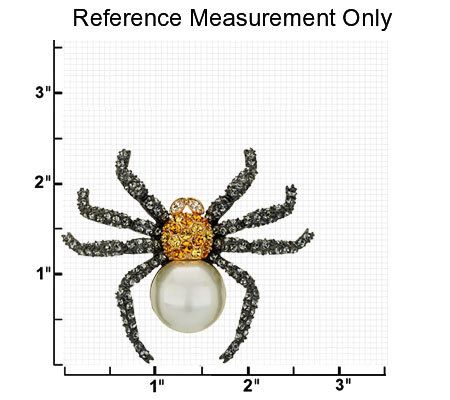 The itsy glitzy spider. Your look will be anything but washed out with this elegant arachnid on your jacket or collar. Its ornate body incorporates a white simulated pearl, simulated citrines, and yellow, white, and black simulated diamonds, weaving a web of color and allure around any ensemble. From the Joan Rivers Classics Collection(TM).