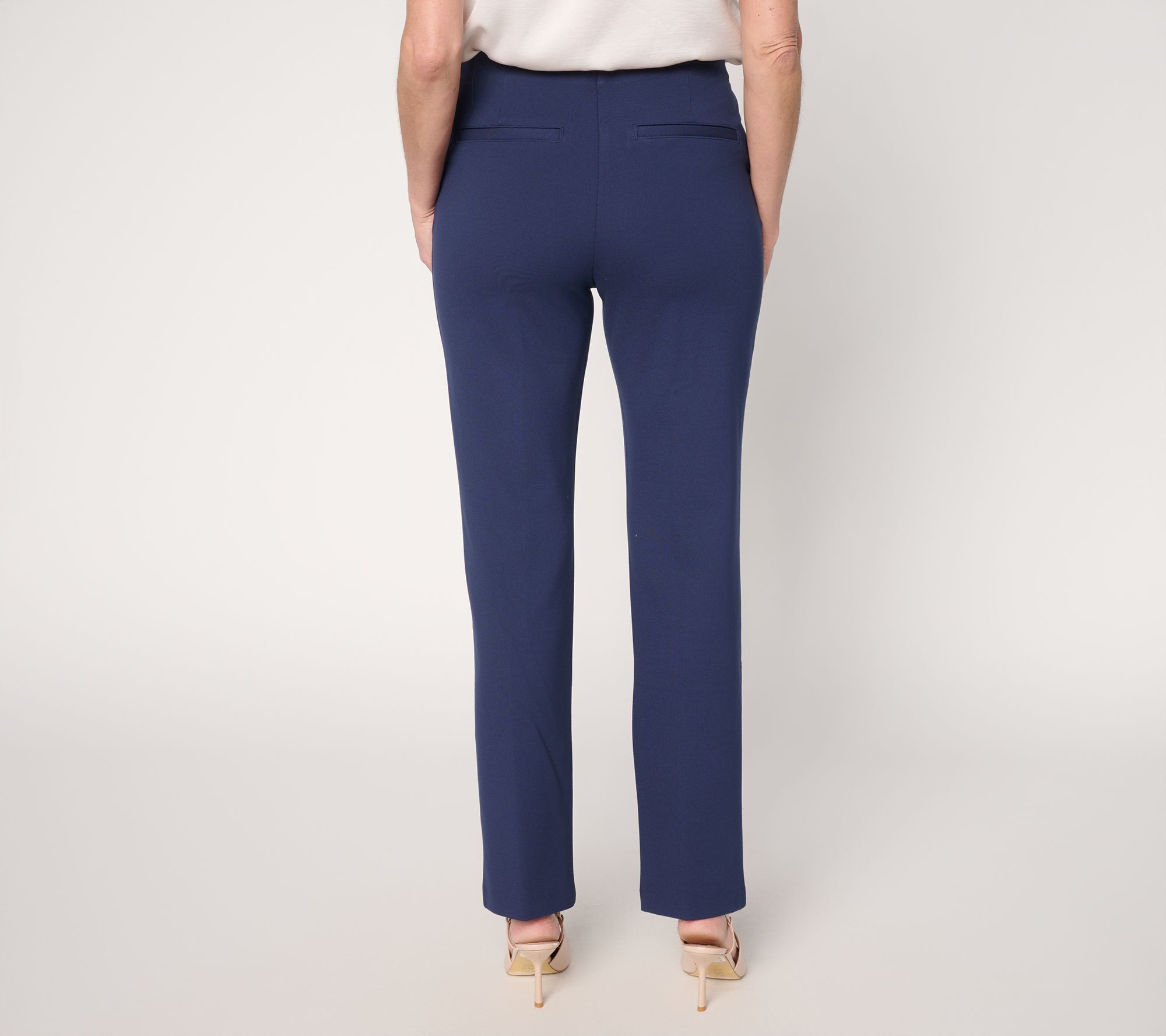When a pro look is paramount, these smooth, sturdy ponte knit pants with classic tailoring pull it together -- from all angles. Just mate with a top to suit the moment (think denim button-front, silky blouse, or soft sweater) and you're set. From the Joan Rivers Classics Collection®.