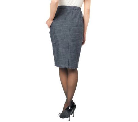 Trim, slim, and ready for business. This perfectly professional piece skirts the standard with an unconventionally cute ruffle detail at its hemline. From the Joan Rivers Classics Collection(R).