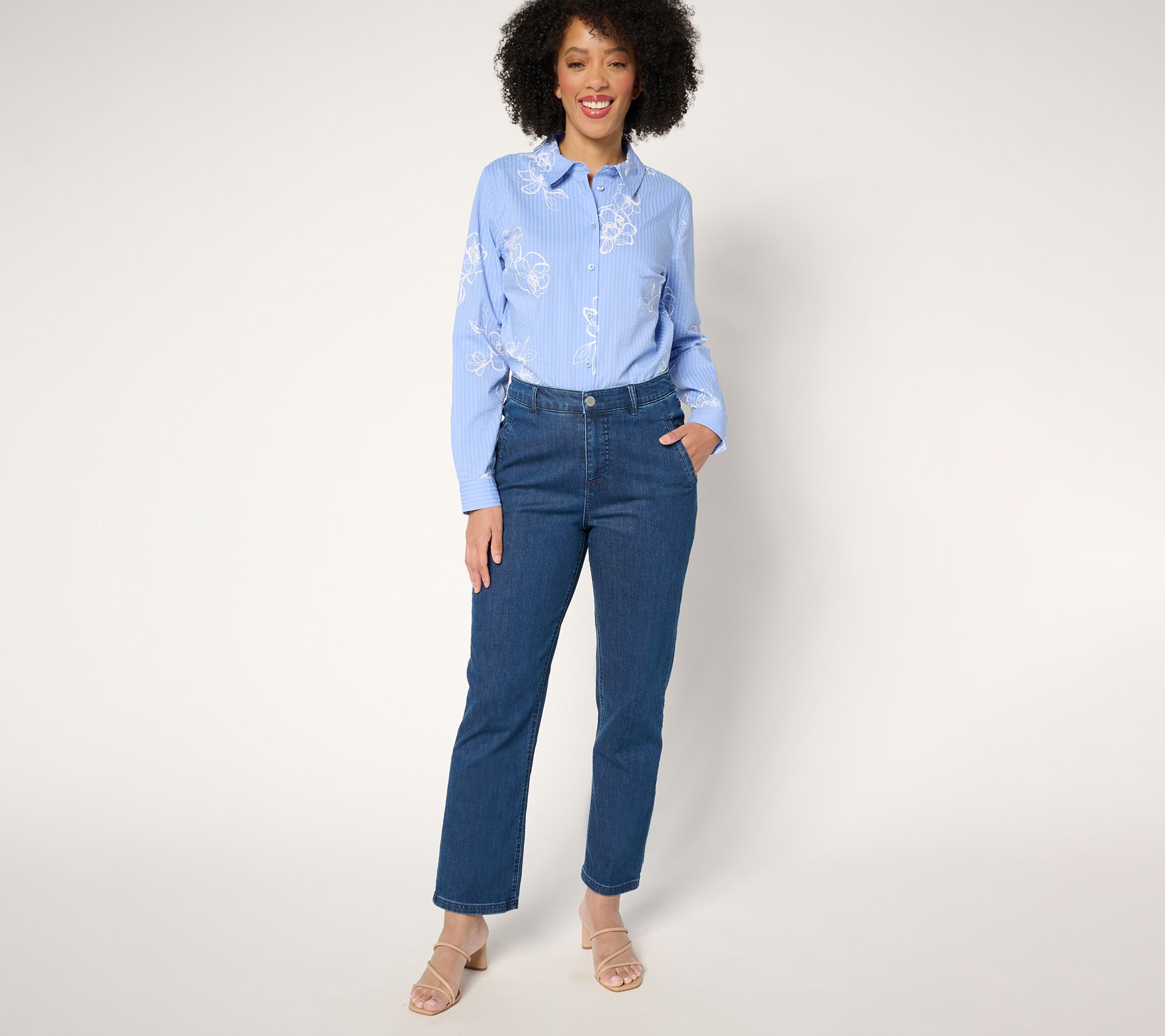 Refreshingly stylish for garden parties, brunch dates, or in-office days, these denim ankle pants blend a classic straight leg with a vintage-y vibe -- and too-cute bee embroidery! Style them with your favorite sandals or heels for an effortlessly chic look. From the Joan Rivers Classics Collection®.