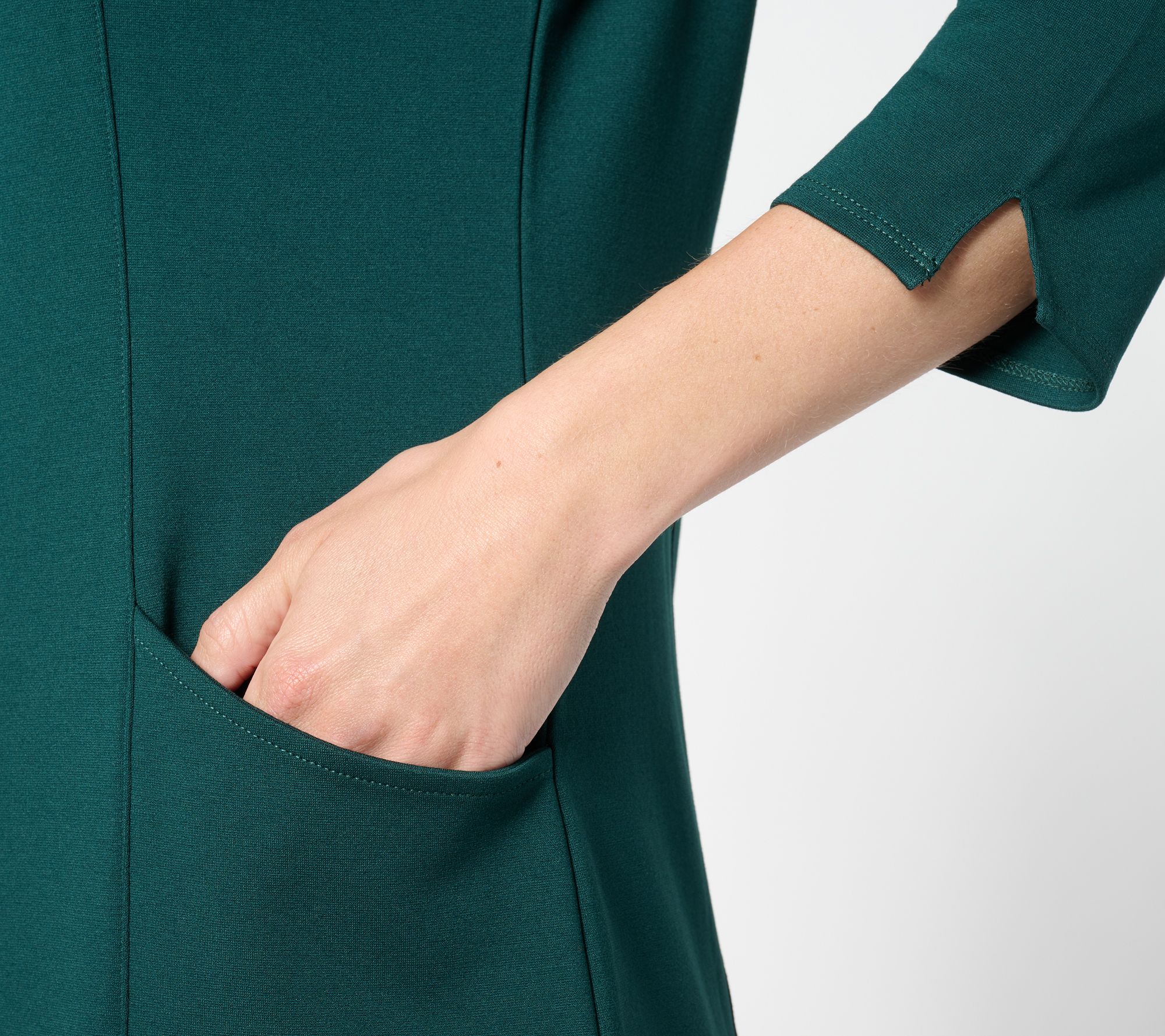 Date night or girls' night out? Either way, reach for this ponte long-sleeve dress with flattering princess seams and convenient front pockets. It fashionably fits any function, just depends on how you accessorize! Wear shooties for chic and casual and a statement necklace for instant elevation. From the Joan Rivers Classics Collection®.
