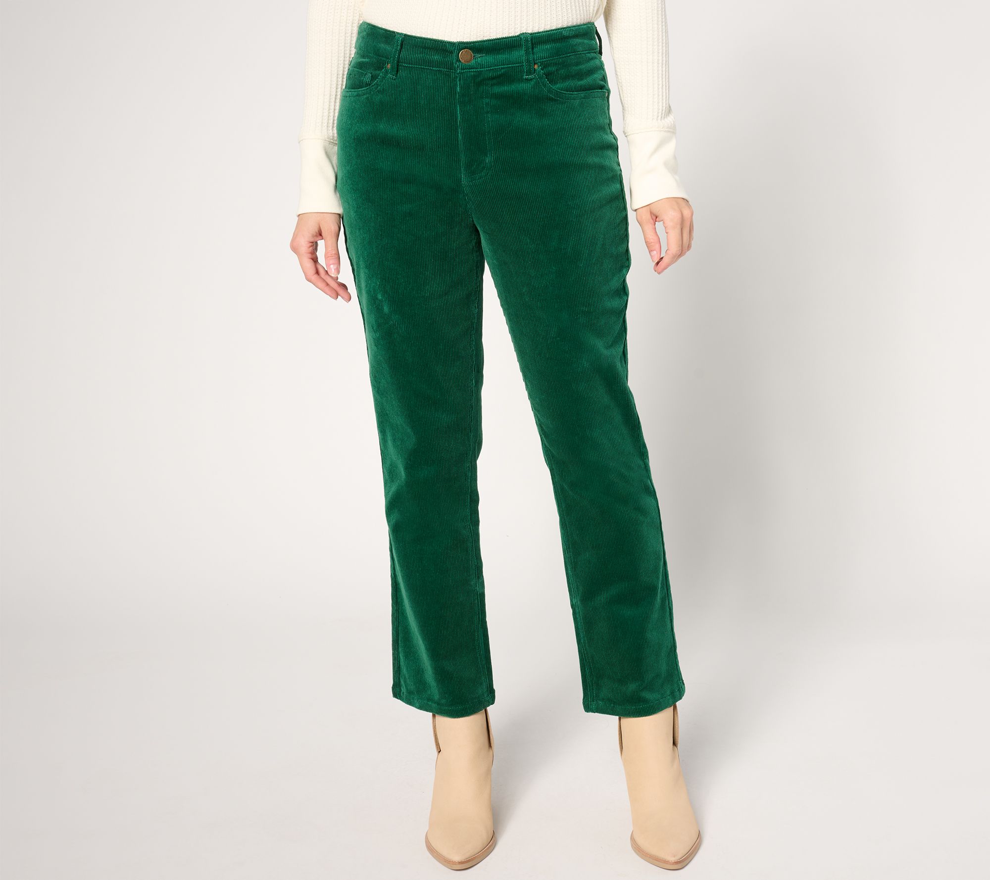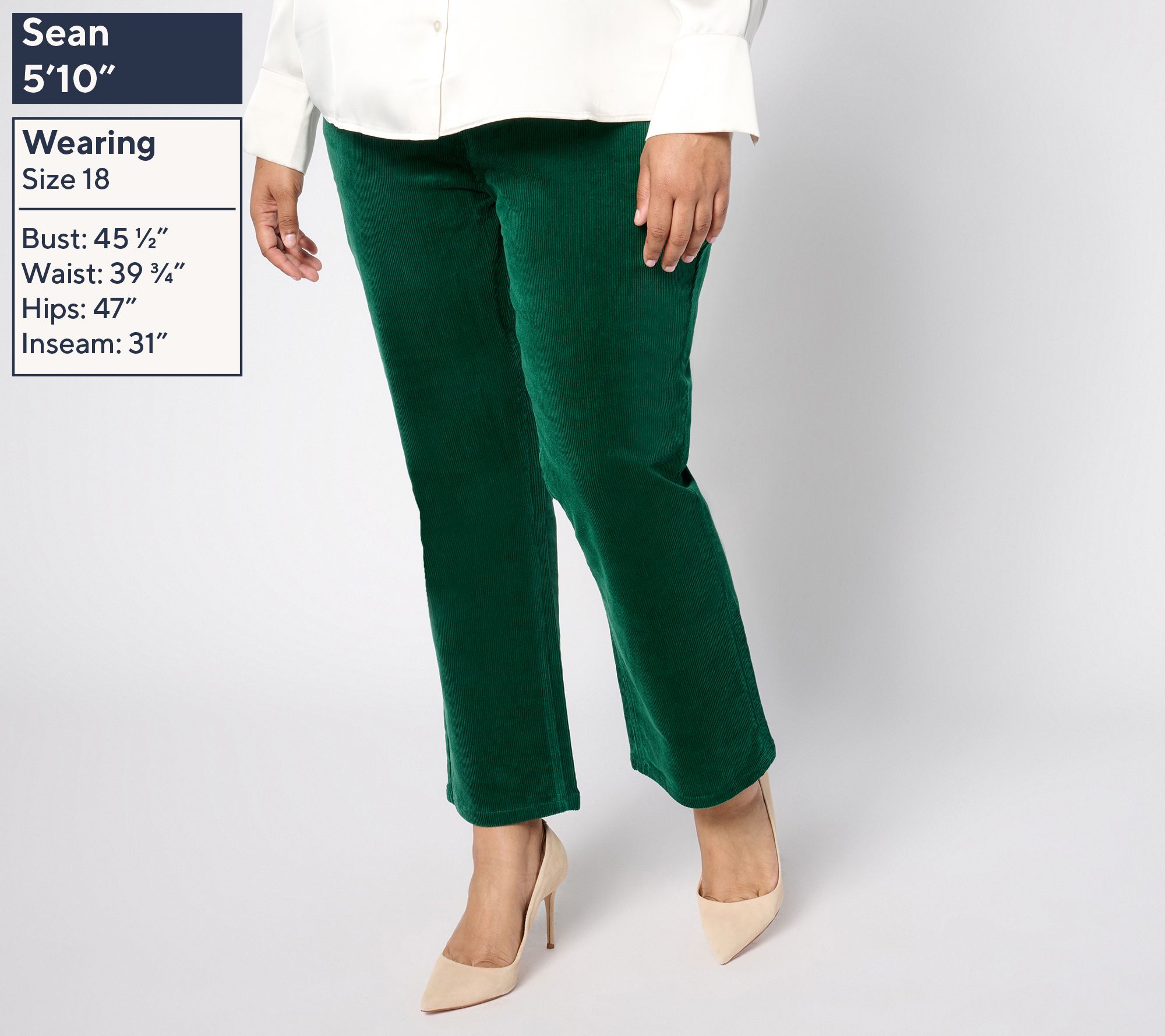 Cooler temps? Cozy pants! A modern kick flare leg keeps these stretchy-soft cords as polished as they are practical. From the Joan Rivers Classics Collection®.