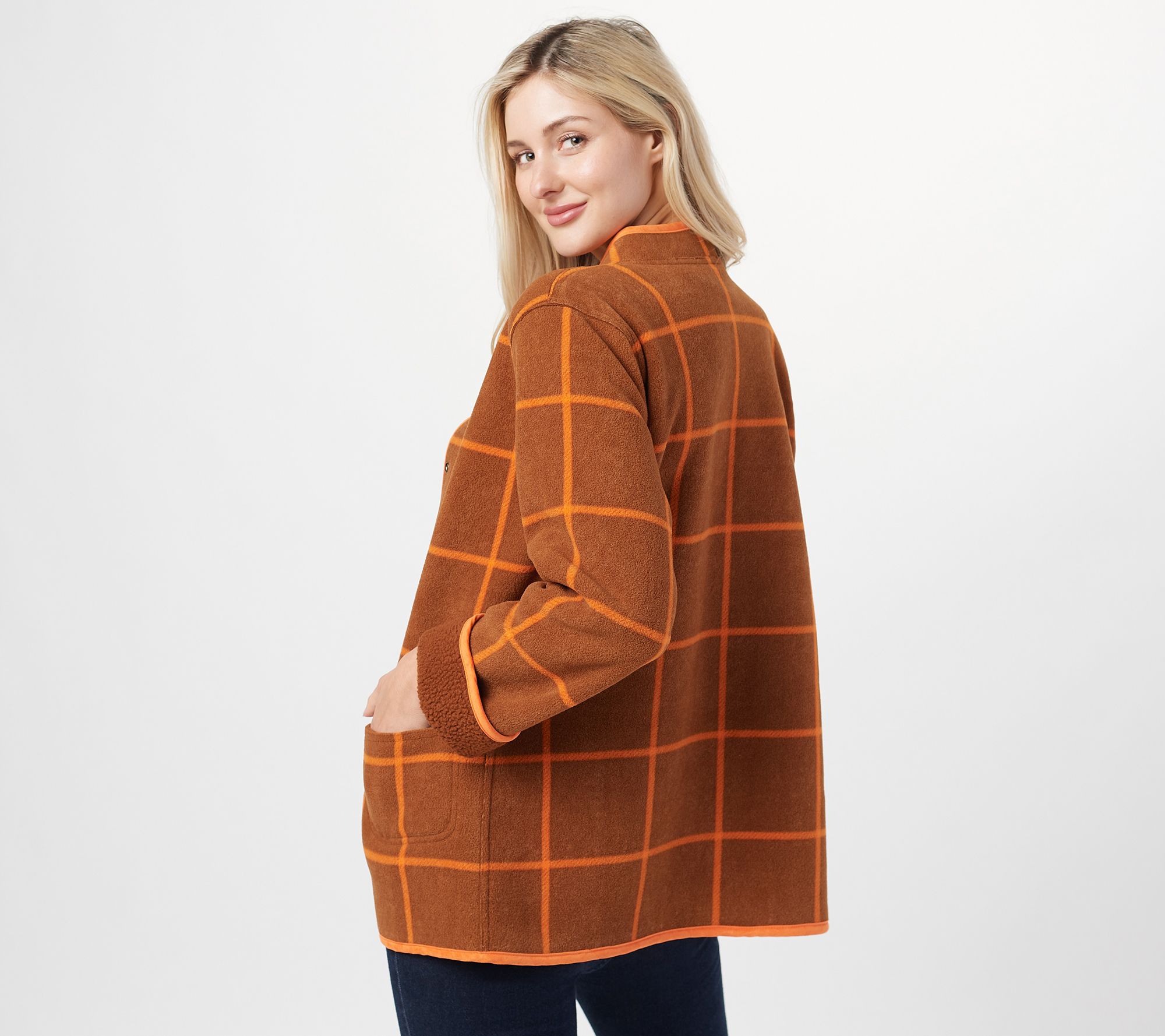 One childhood love you never grow out of? Anything reversible. What's not to love about two jackets for the price of one? This jacket has a plaid-printed fleece side for those days you're feeling extra fall (hayride heaven!), and a solid-color Sherpa side for when the rest of your outfit is calling for some cozy calm. From the Joan Rivers Classics Collection®.