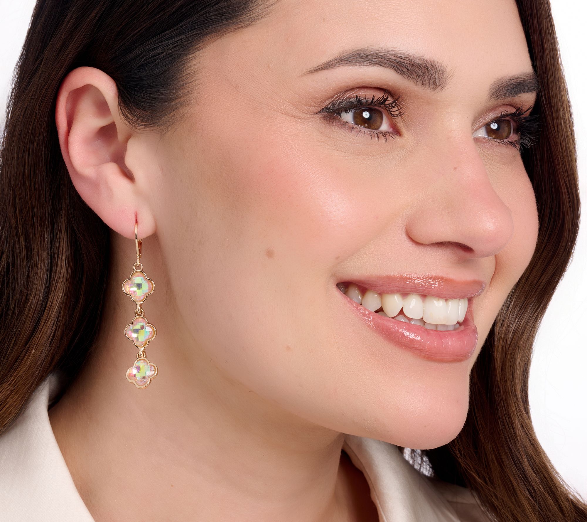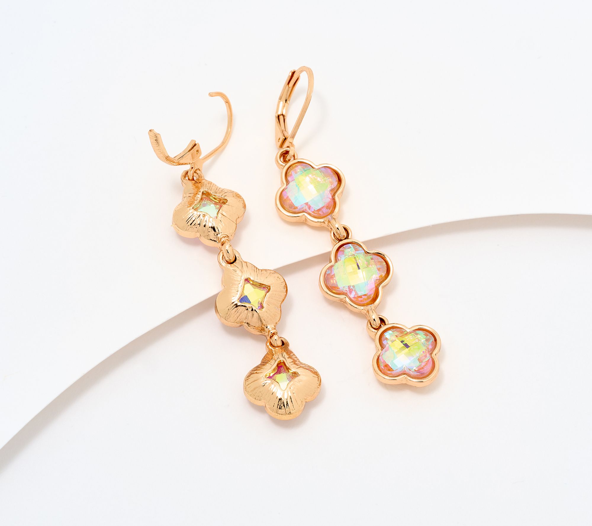 Radiate sophistication on any special outing or casual afternoon with these quatrefoil drop earrings. Lustrous clover-shaped aurora borealis crystals sway their way with every step, reflecting a spectrum of light that draws admiring glances. Whether paired with a favorite dress or a crisp blouse, these earrings bring luminous charm to your everyday. From the Joan Rivers Classics Collection®.