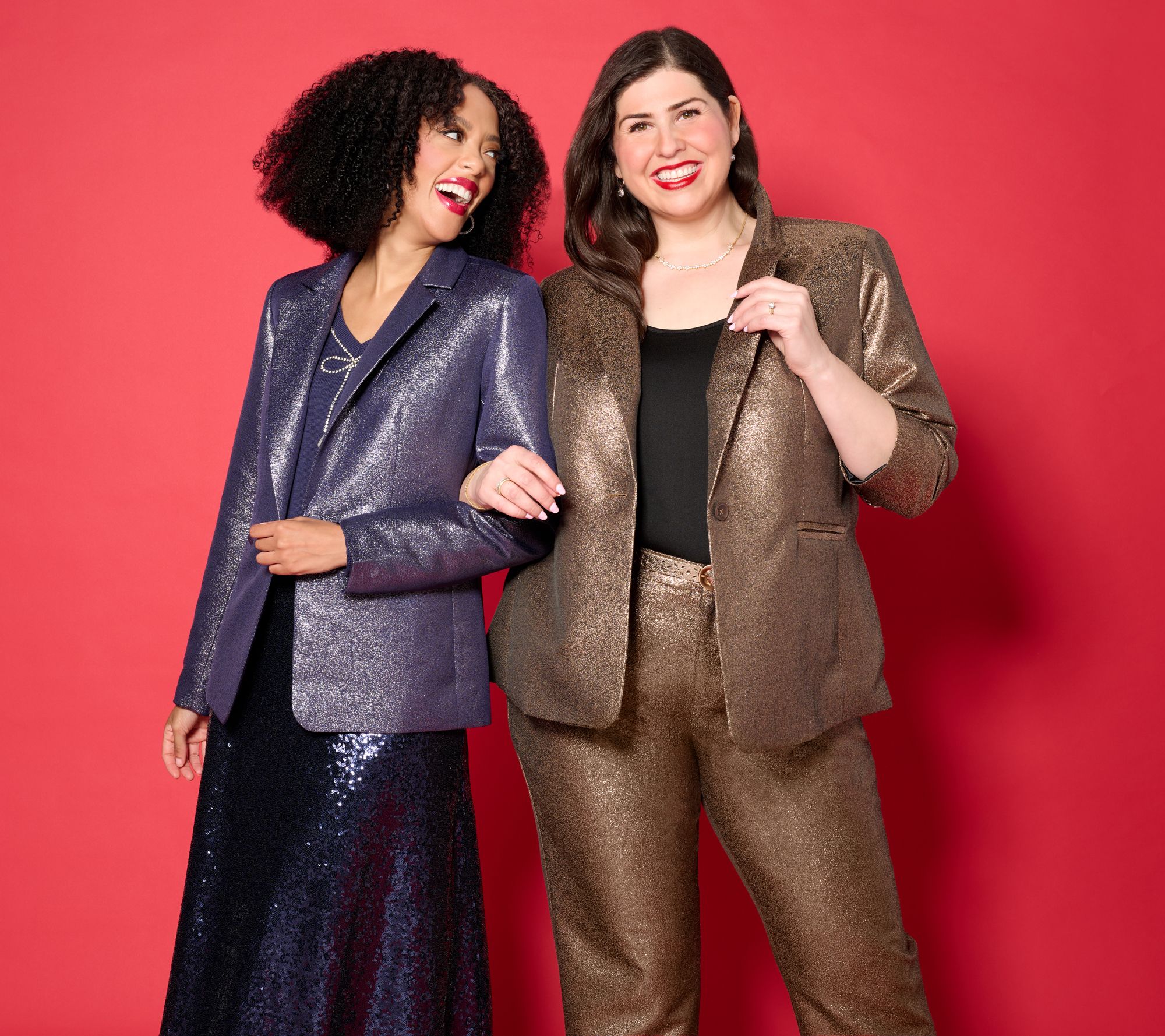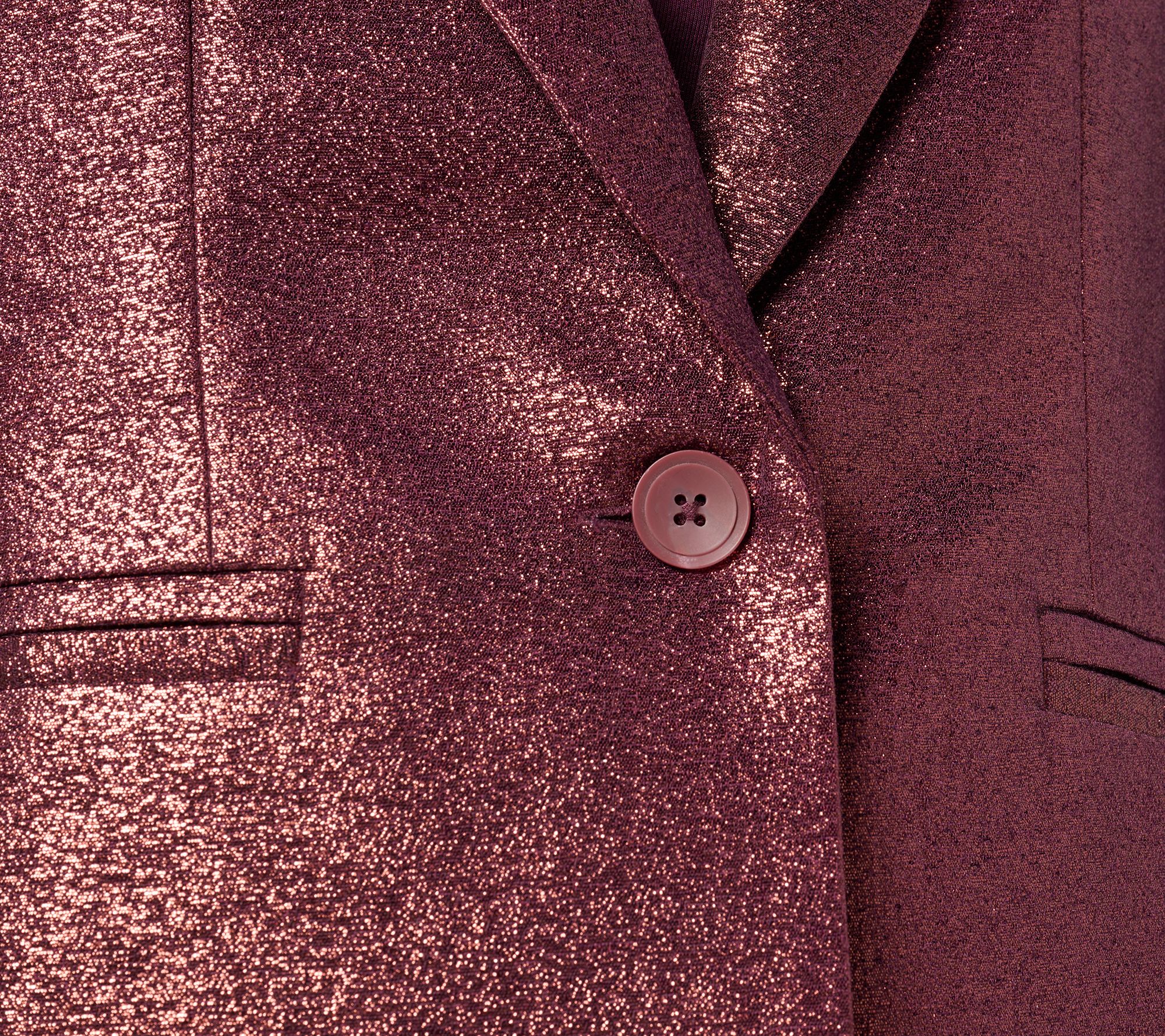 Consider it confident coverage for a season's worth of celebrations and soirees. But if laid-back is your look, pair it with your favorite jeans and heeled ankle boots and head out with the gals. Boring office party on the horizon? Show up and shine with this polished piece that makes it utterly stylish to step out from behind that desk. Hosting the holiday dinner? Mix, mingle, and be merry... (you got this!). Removable shoulder pads add an instant attitude adjustment, and its fully lined interior is so satiny luxe, you'll want to wear the blazer unbuttoned to show it off. And, of course, ring in the New Year with this radiant layer.