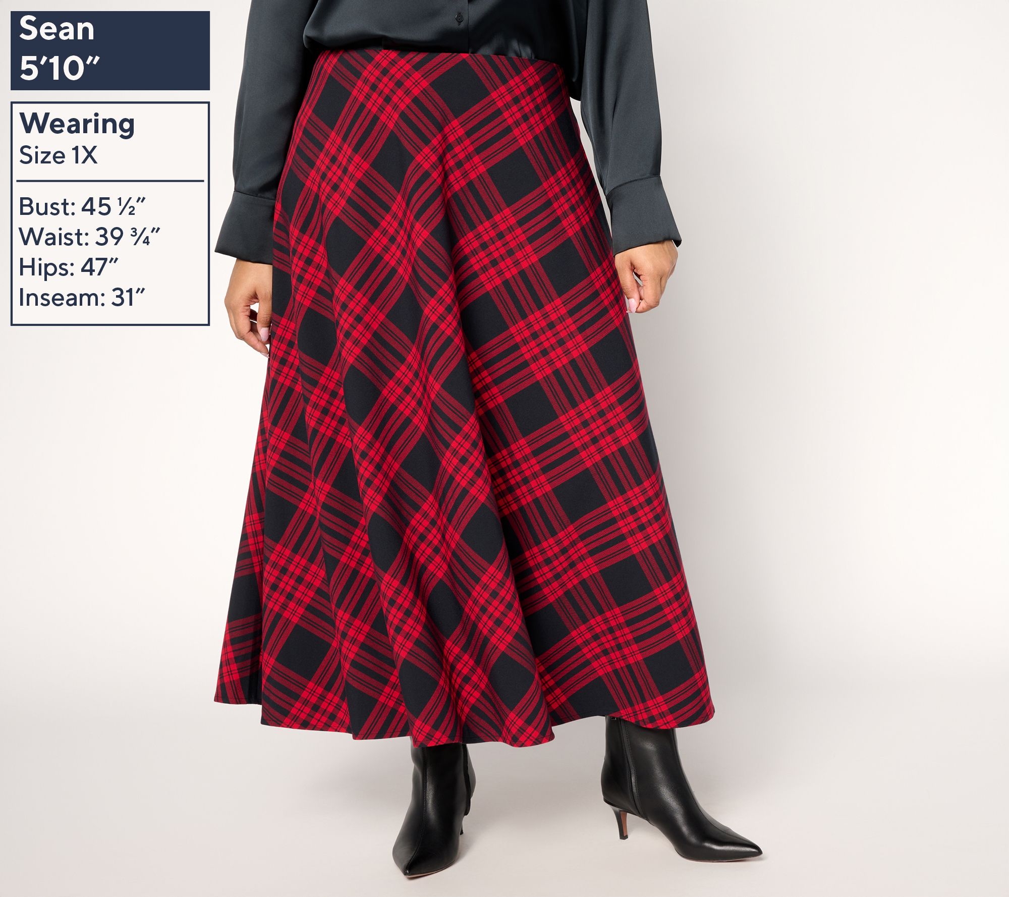 - Features: biased plaid pattern, maxi length