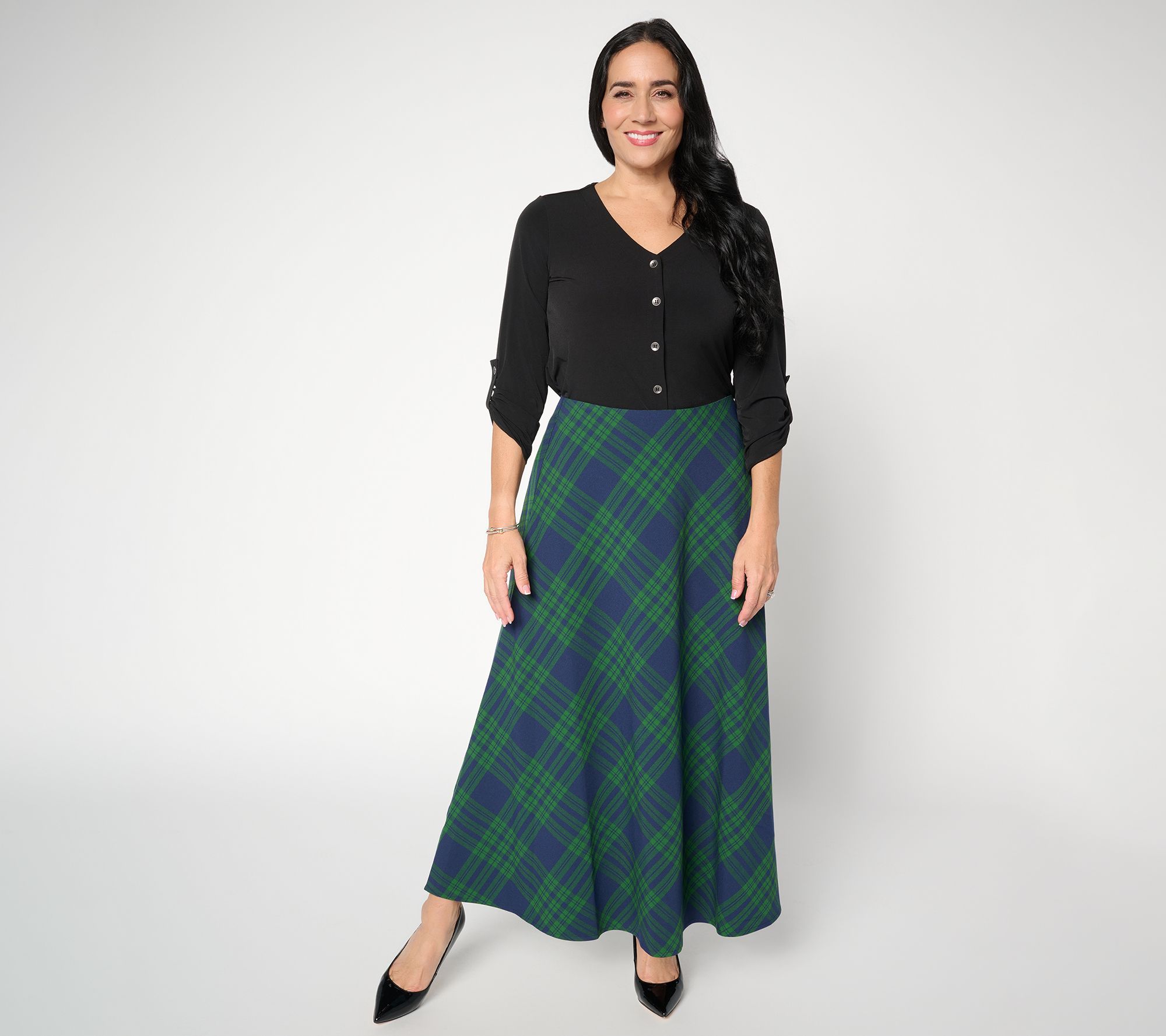 Can't-miss classic. Work the room in this sweeping bias plaid maxi skirt. From the Joan Rivers Classics Collection®.