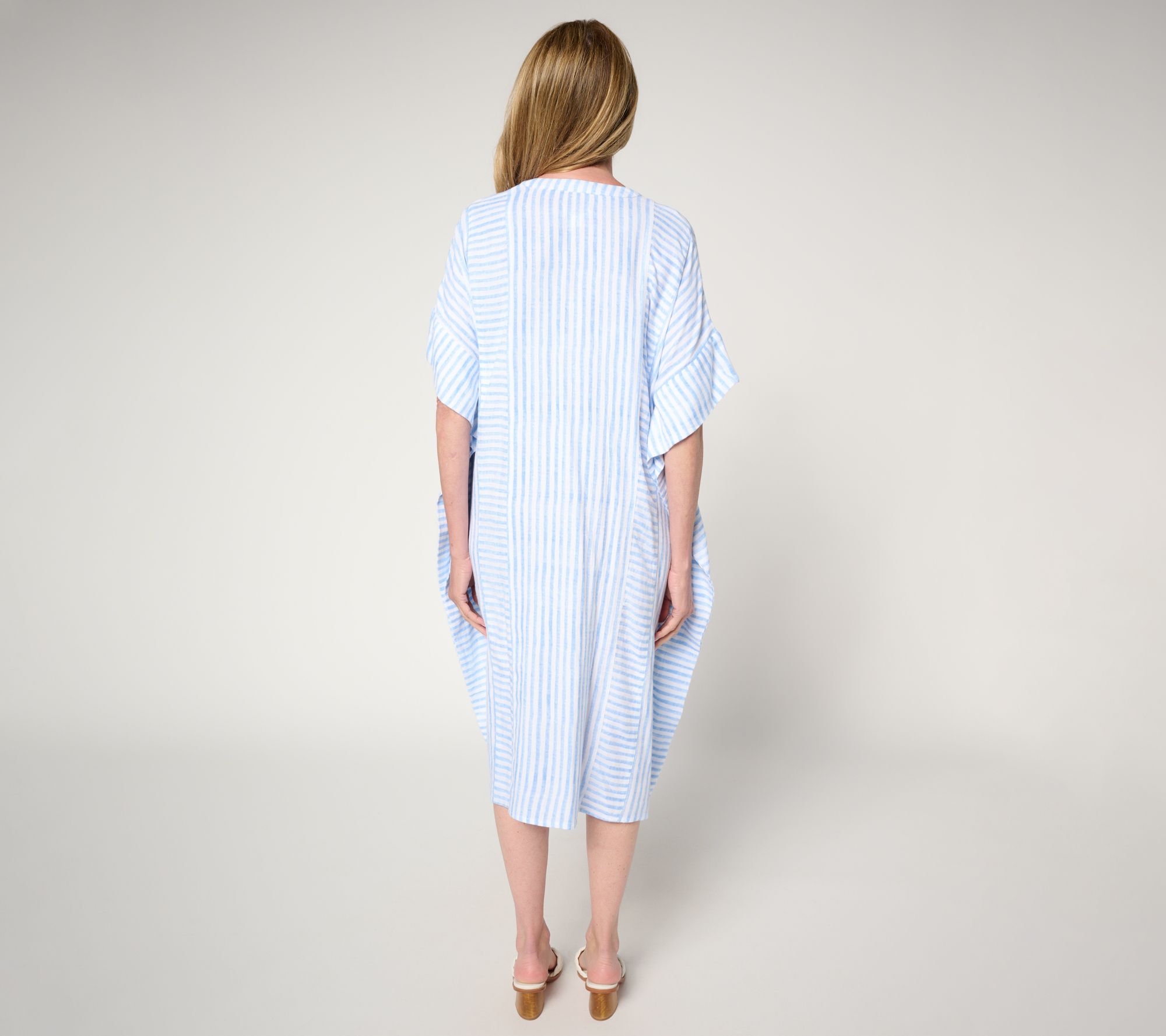 Easy days call for the breezy comfort of this gauze caftan. The mixed stripe pattern and shirred waist give it a playful look that feels right for relaxed mornings at home or quick outings. Soft cotton woven fabric and generous fit keep things easygoing from sunup to sundown. From the Joan Rivers Classics Collection®.