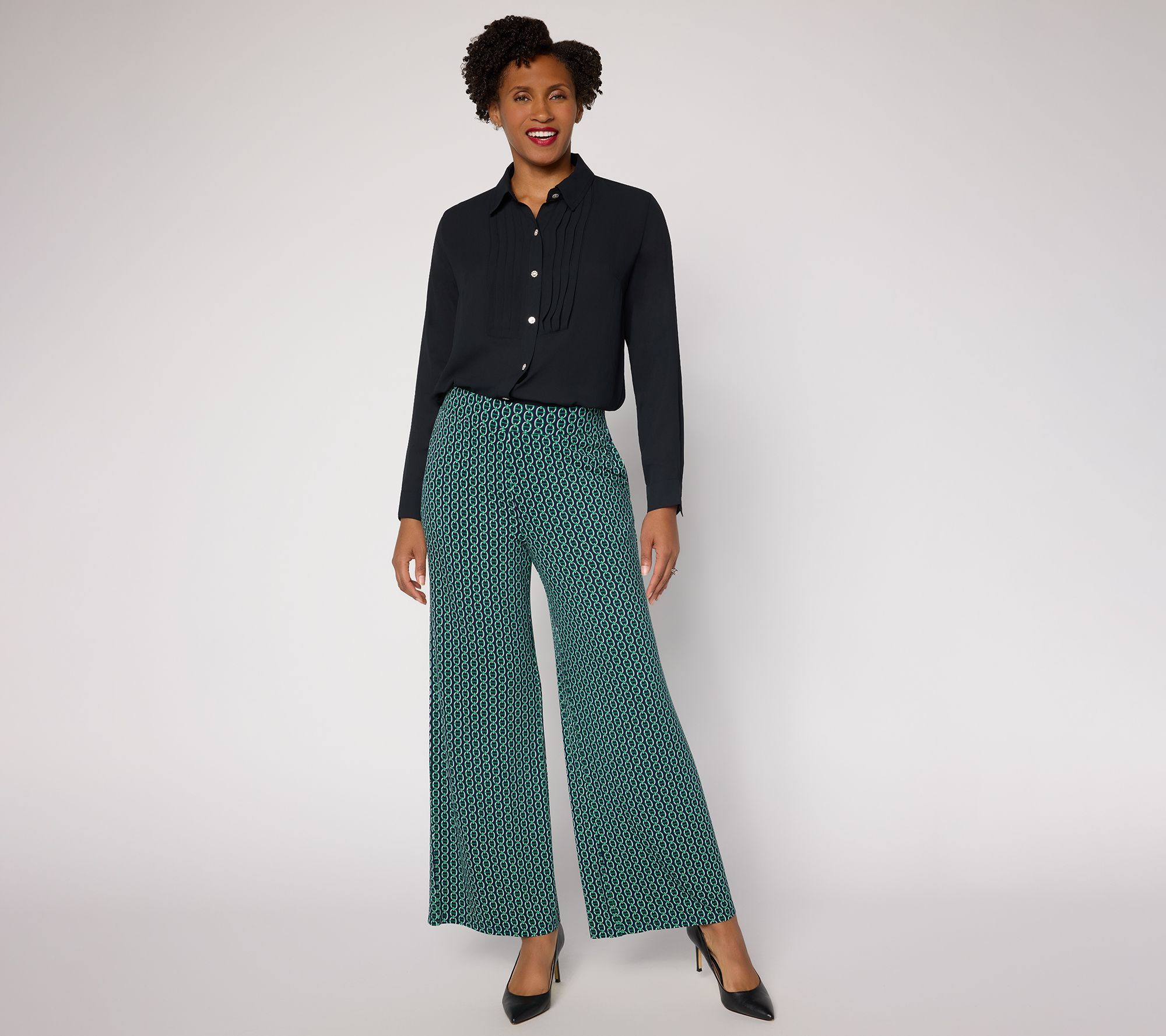 Leg Shape: wide leg; widens fashionably from thigh to leg opening
