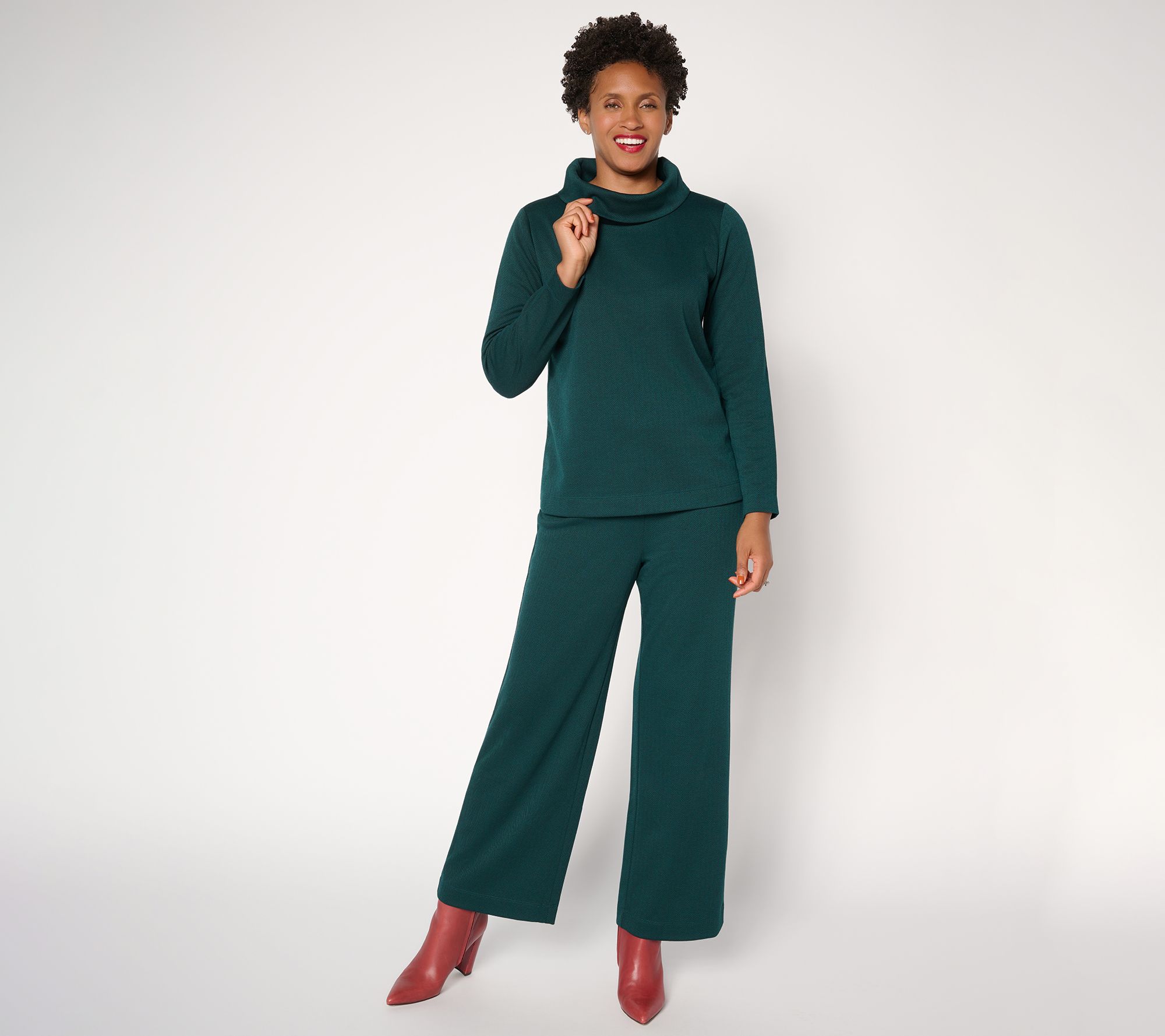 Commuter mornings or evening dinner dates feel effortless in these knit herringbone wide-leg pants. The easy pull-on style with an elastic waistband invites all-day comfort, while the tailored silhouette adds a polished edge to your favorite tops and footwear. From the Joan Rivers Classics Collection®.