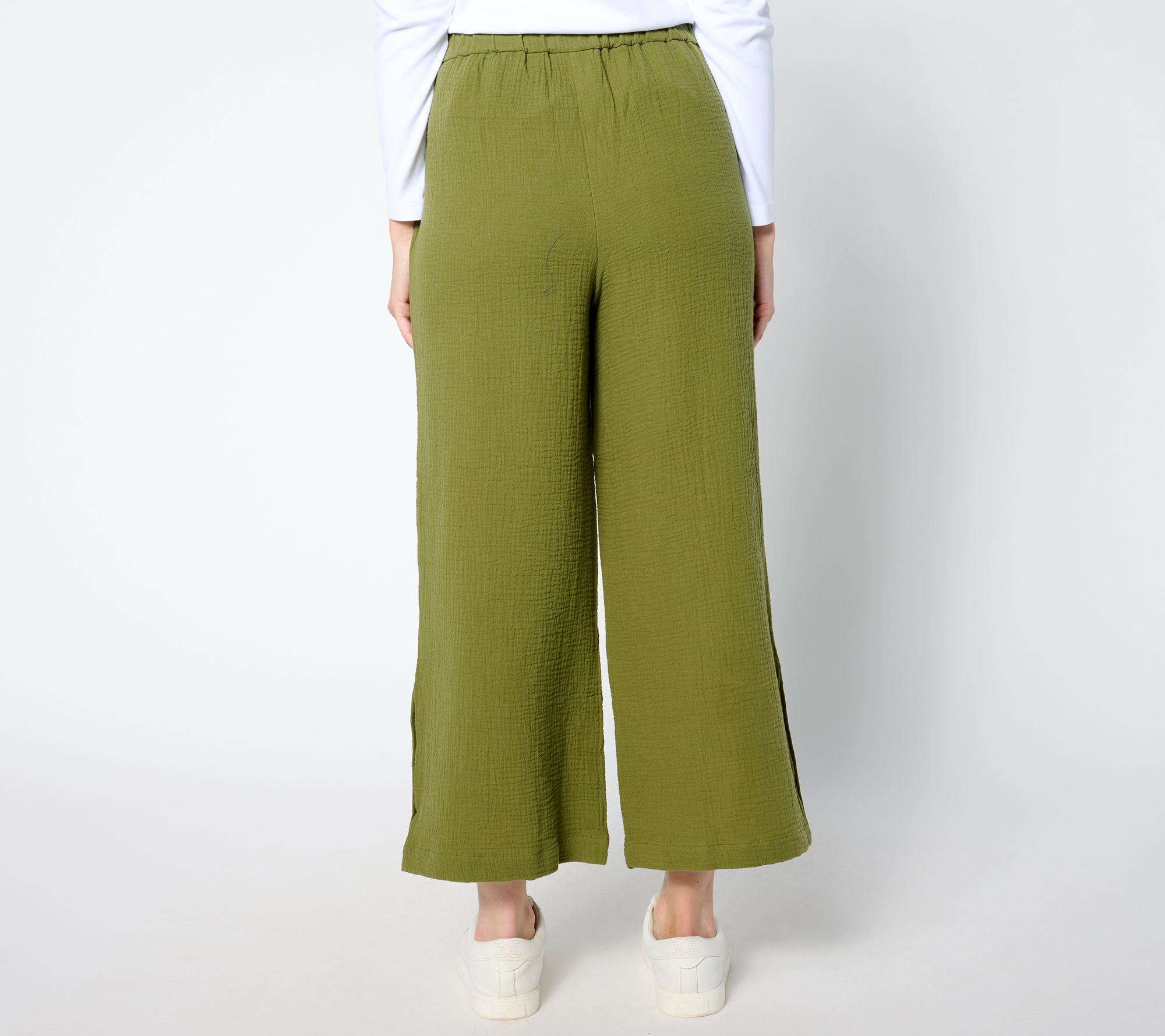 The season's even sweeter in these lightweight and luscious marshmallow gauze crops. Pair the feel-good wide-leg style with a tee for evening amusements, let it anchor an in-office look, or pop it on over a swimsuit. The options are endless! From the Joan Rivers Classics Collection®.