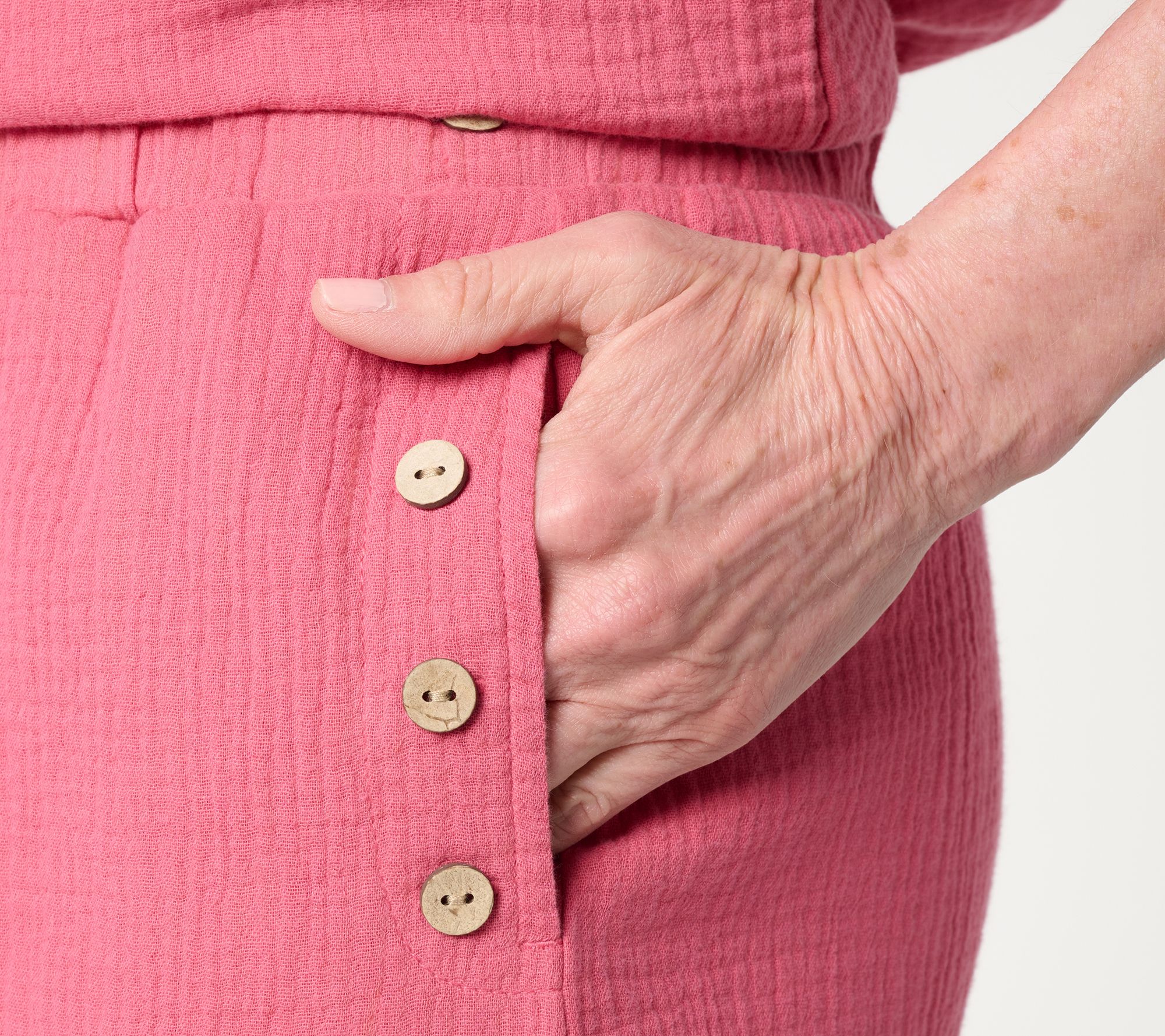 Instant vacay vibes. Slip into a pair of these marshmallow gauze ankle pants, and you'll feel a million miles away. Thier soft pillow-like feel, bouyed by a relaxed (and so on-trend) wide leg, is the essence of laid-back elegance, ideal for sightseeing excursions, al fresco dining, or evening walks by the water. Staying local? Pop on a floppy hat and some sunnies, and you've got a 'fit to channel those summer feels any day of the week. From the Joan Rivers Classics Collection®.