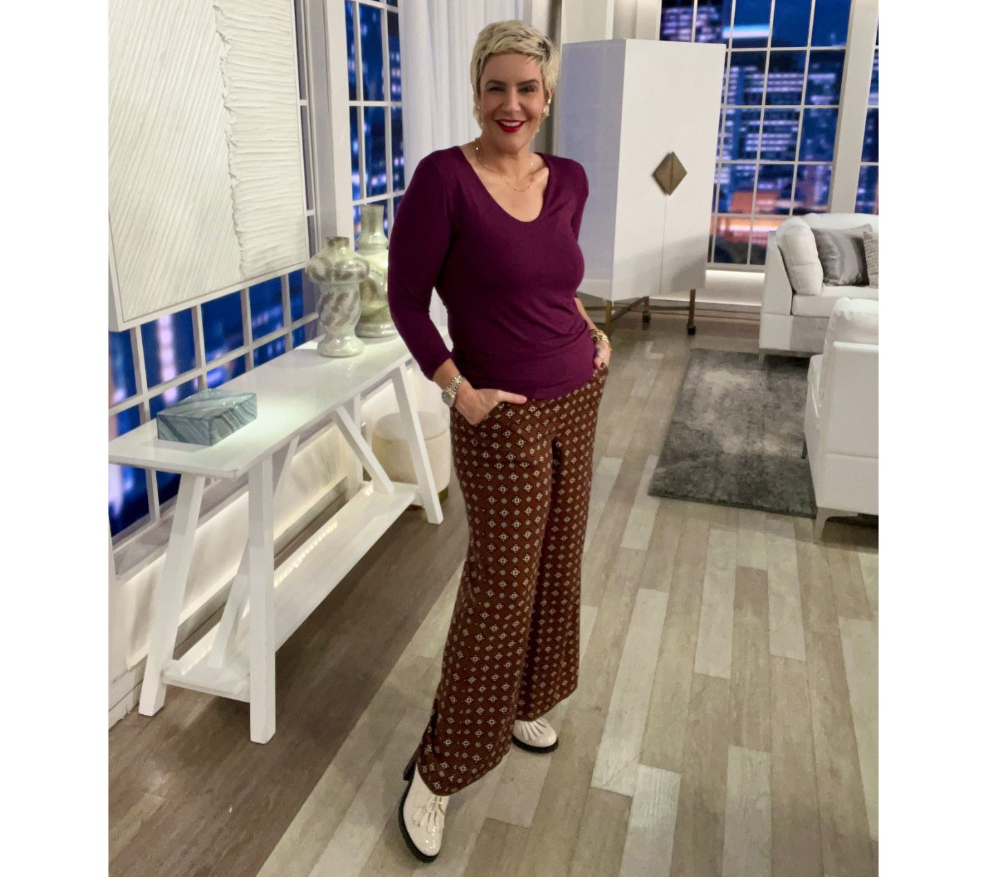 Leg Shape: wide leg; widens fashionably from thigh to leg opening
