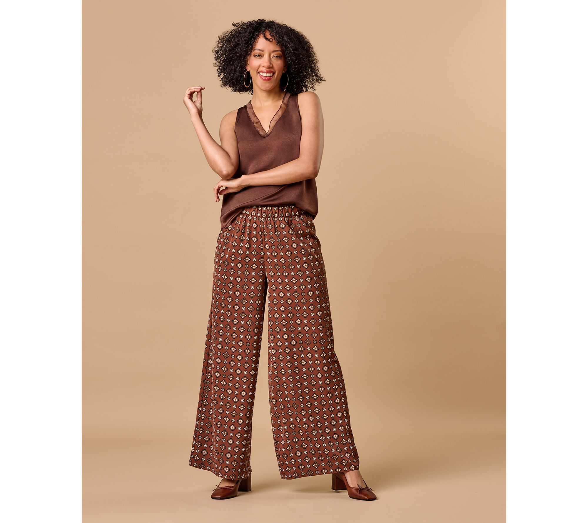 When you're ready to trade everyday denim for something with a little extra polish, reach for these stretch satin foulard pants. The wide-leg silhouette brings trend-right sophistication, while the elastic waistband keeps things comfortable whether you're dressing up or keeping it casual. From the Joan Rivers Classics Collection®.