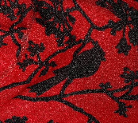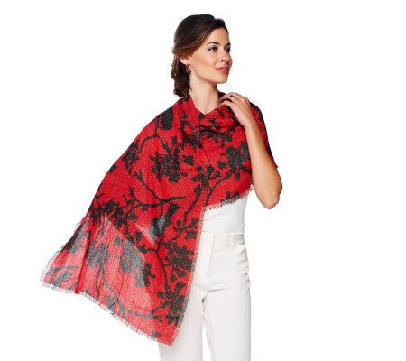 Up to your neck in style. With a floral and cardinal motif that's perfect for the season and a touch of shimmering thread, this scarf is a fashionable addition to any look. From the Joan Rivers Classics Collection(R).