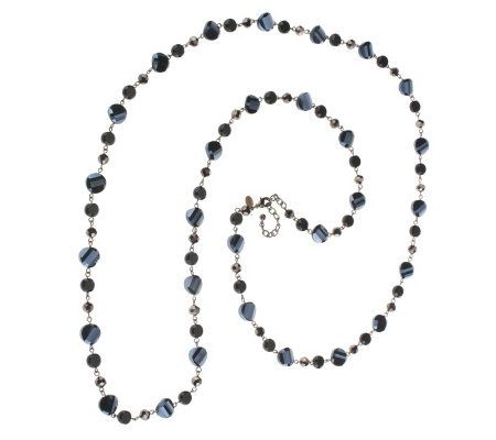 Luxe layers. At nearly 6' long, this lengthy necklace is made to be layered. Sophisticated and stylish, the necklace is composed of curved, round, and button-shaped faceted tonal beads in a repeating pattern. Each stunning choice features shades of the same color, some with an aurora borealis coating. From the Joan Rivers Classics Collection(TM).