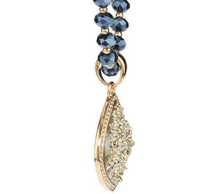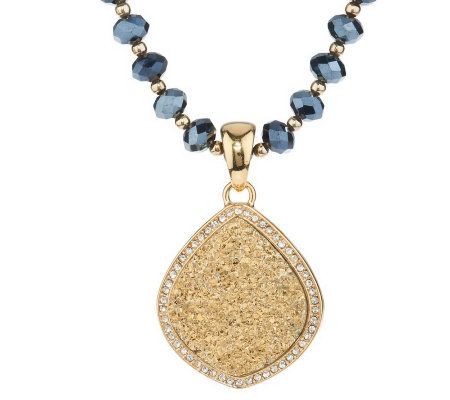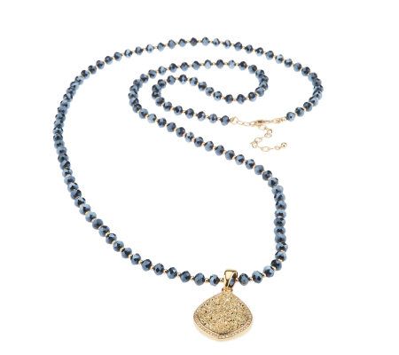 Joan Rivers Simulated Drusy Lotus Pendant on 48" Glass Bead Necklace