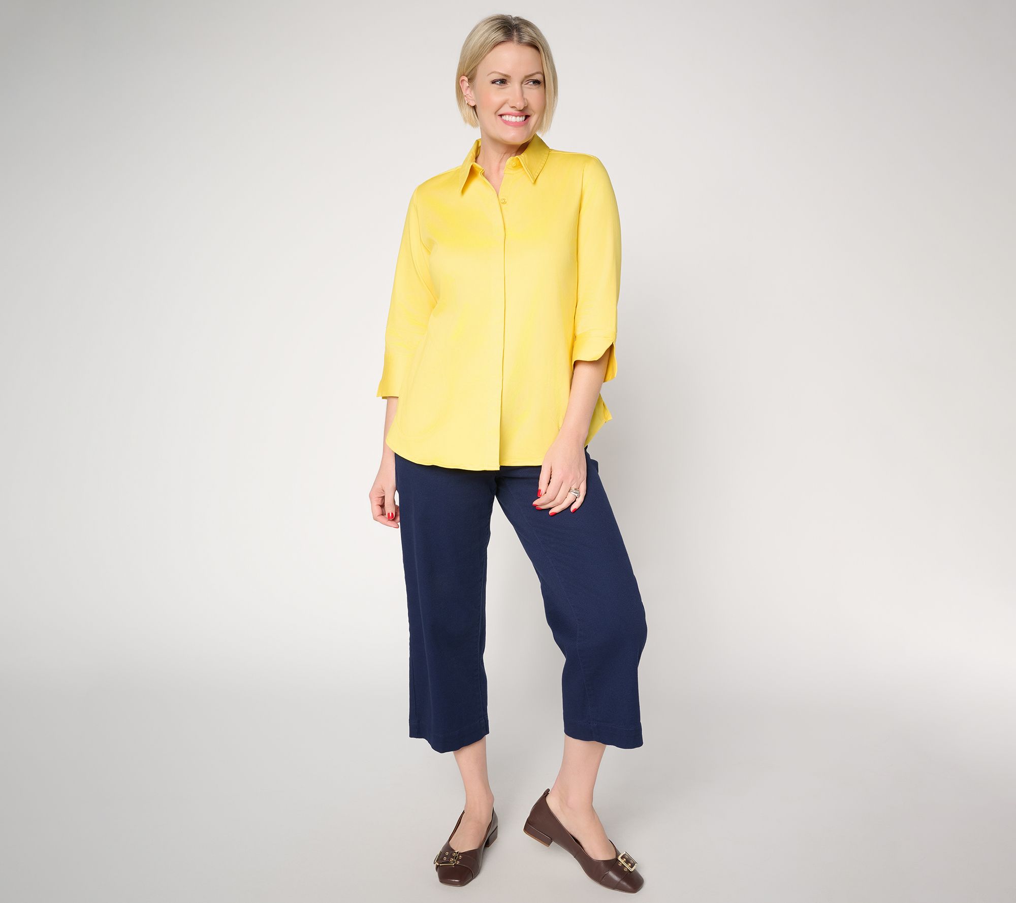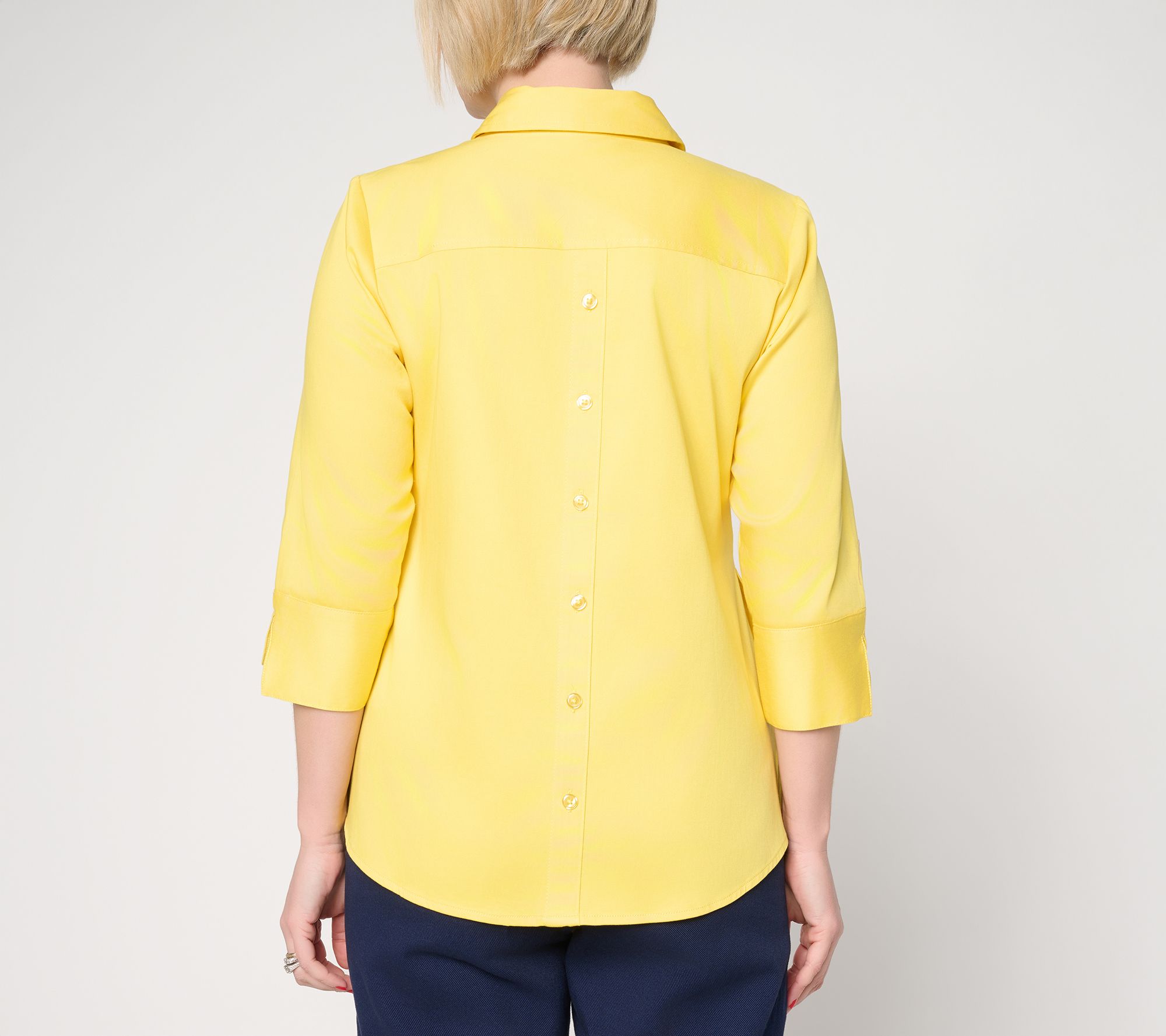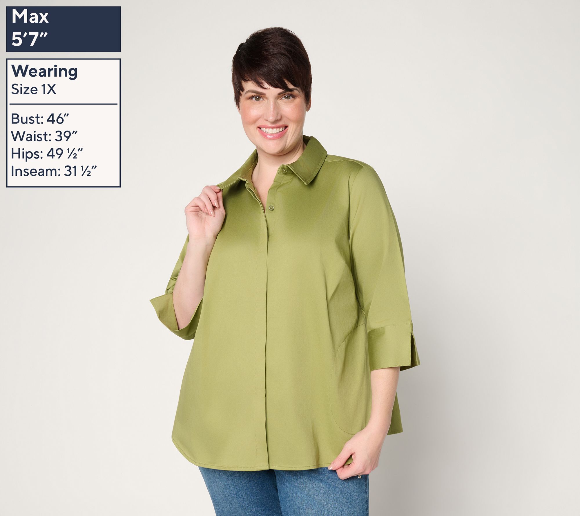 Chic style meets weekday comfort in this tailored shirt -- thoughtfully crafted with side pockets and roomy cuffs. Whether it's paired with your favorite denim for on-site client meetings or layered over trousers for desk-to-date days, the graceful cut offers a look that's always refined. From the Joan Rivers Classics Collection®.