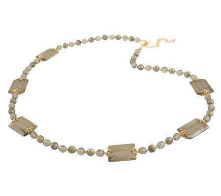 Absolutely bead-dazzling! Colorful resin tablet beads with decorative endcaps, round resin metallic beads, round faceted aurora borealis beads, and seed beads form the repeating pattern that highlights this vintage-inspired necklace. From the Joan Rivers Classics Collection(TM).