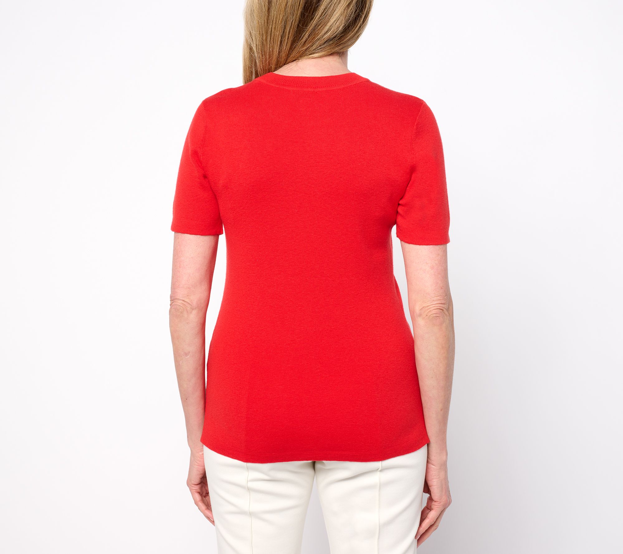 Reach for this silk-blend sweater tee whenever you want to create a refined confident look. Designed for effortless pairing season after season, the crew neckline and ribbed neck band keep things classic, while side slits at the straight hem lend a flattering and easy finish. Try it layered under a blazer or styled solo for a polished look that works from desk to dinner. From the Joan Rivers Classics Collection®.