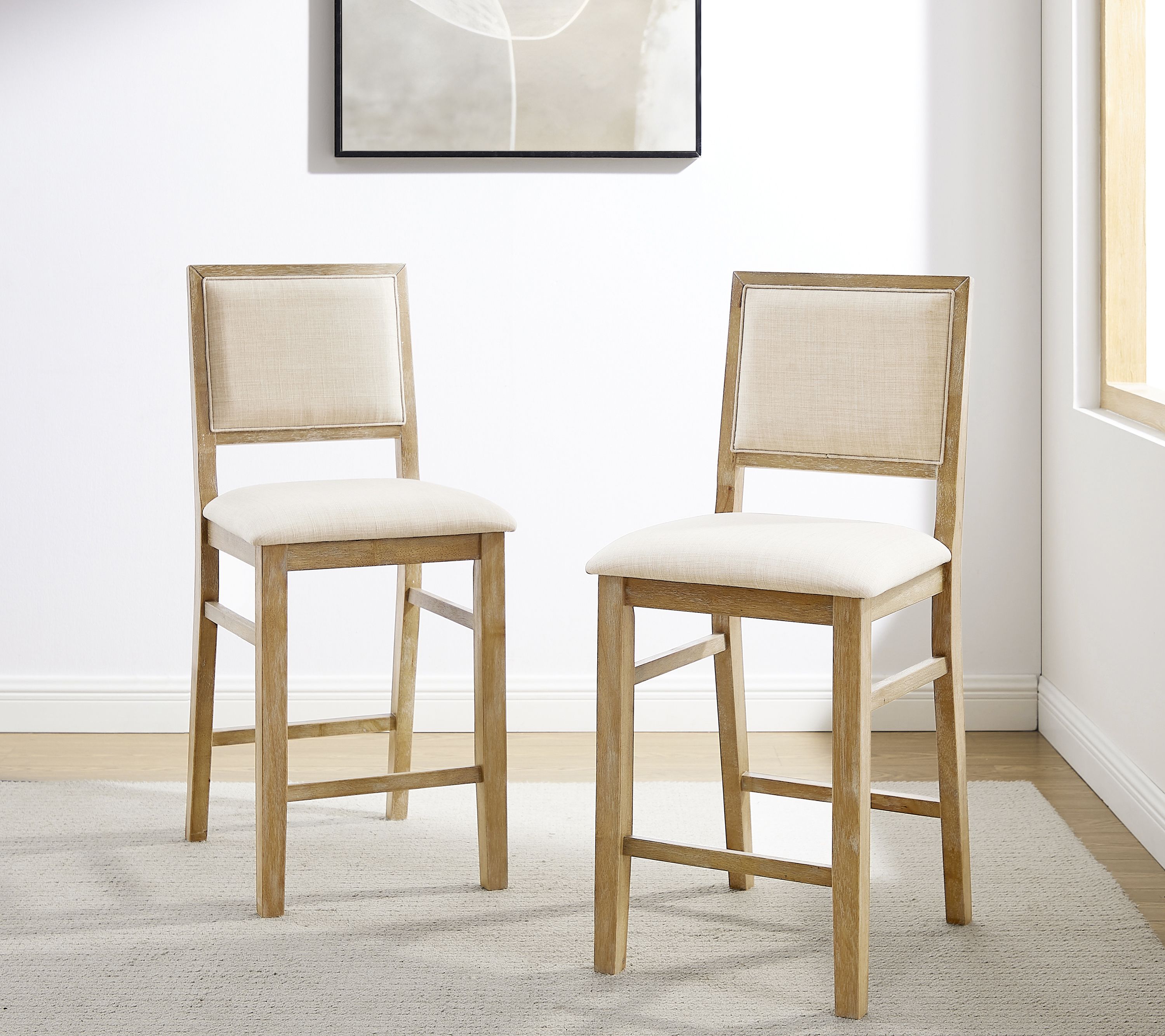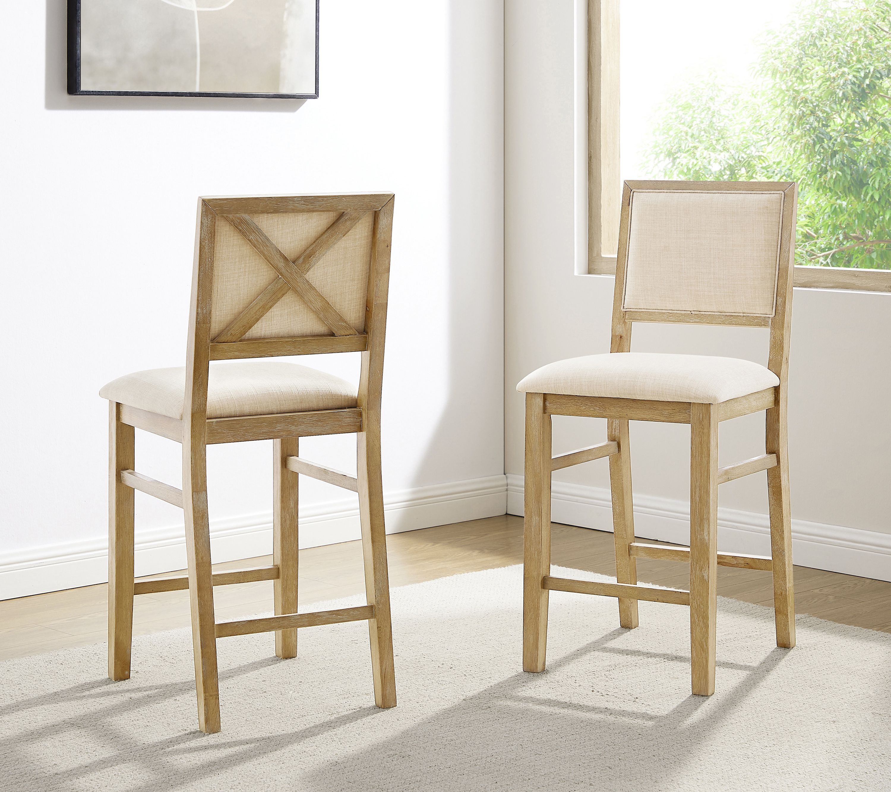Add a touch of rustic elegance to your kitchen island or counter height dining table with the Joanna 2-piece upholstered counter height bar stool set. Featuring comfortable upholstered backs and seats with a wooden X design, these bar stools offer both style and durability. From Joanna.
