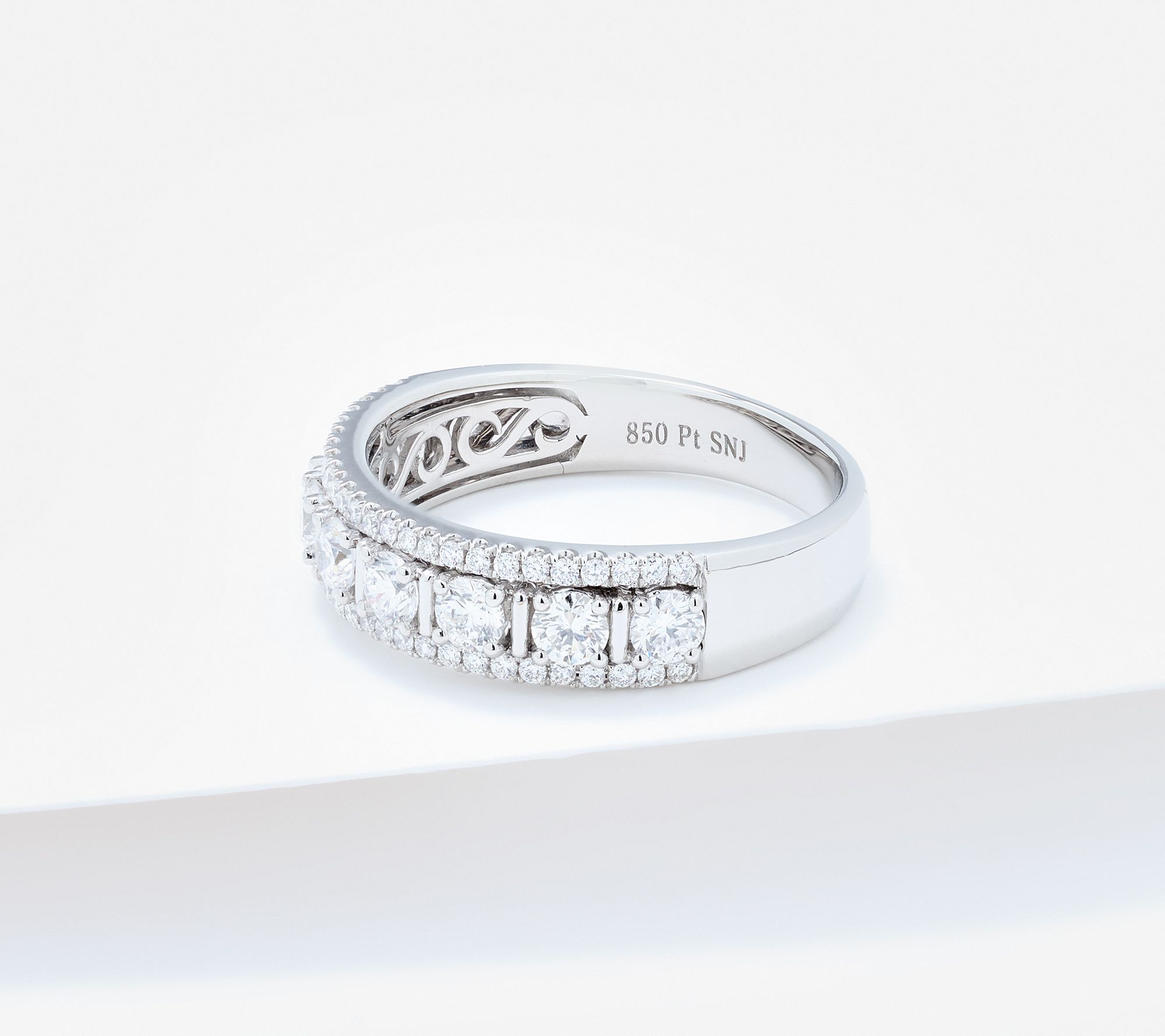 Celebrate life's unforgettable moments with this sparkly band ring, featuring stunning diamonds set in luminous platinum. Its classic silhouette radiates elegance that transitions effortlessly from a daytime event to an evening celebration, making it the ideal ring to cherish or gift for a milestone. From John DiGangi.