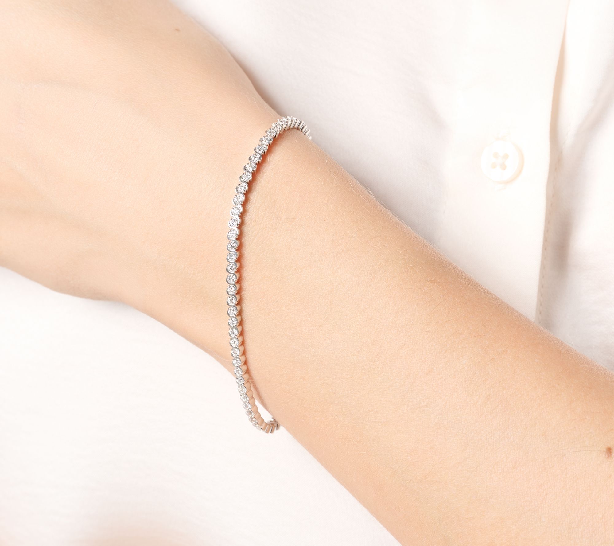 She said yes, yes, yes! -- to this platinum bracelet. Its beautifully fluid row of brilliant diamonds is the penultimate gift to punctuate your bond, whether you've spent a lifetime together or the best few months of your life. From John DiGangi.