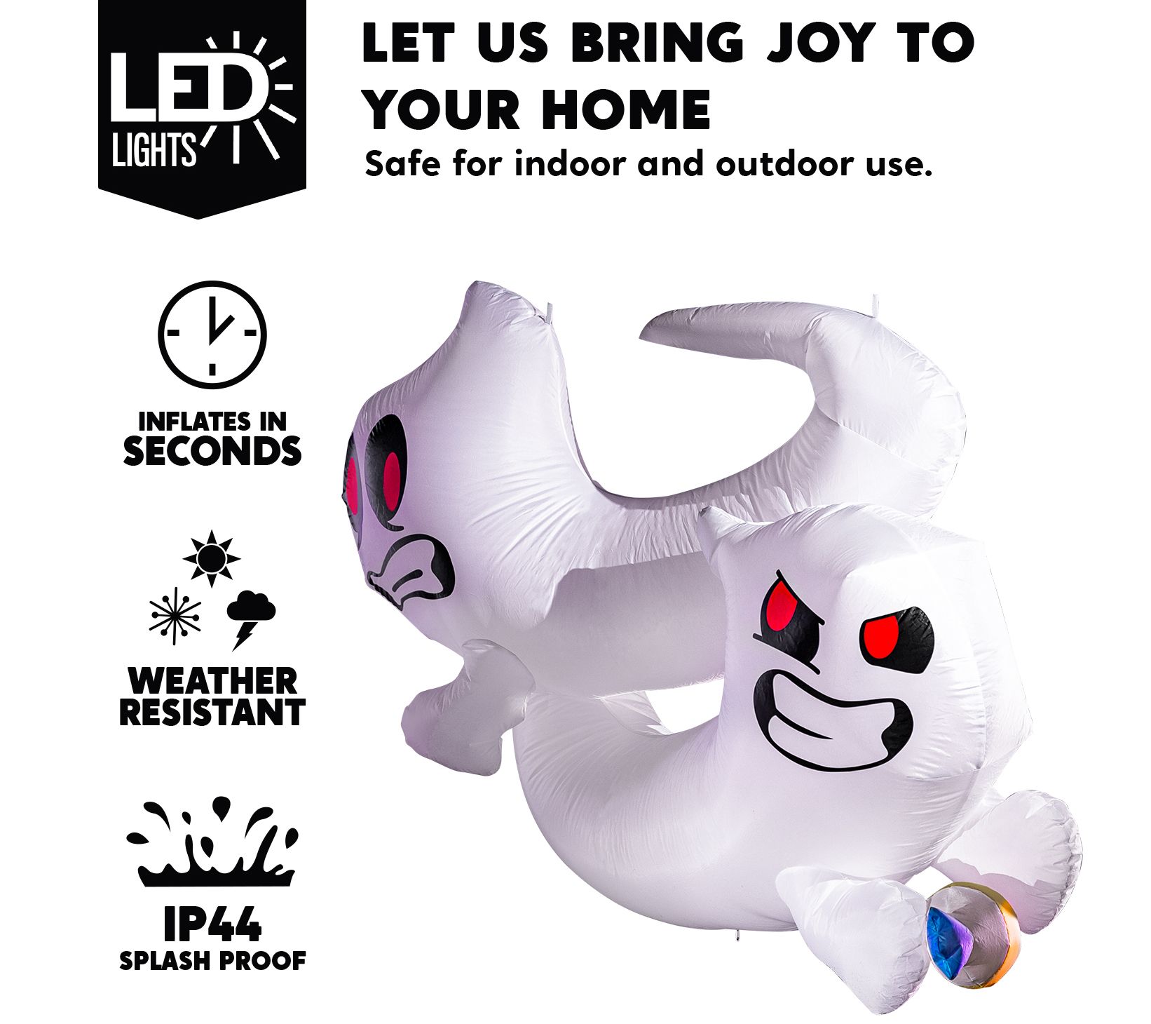 Be the best-decorated Halloween house on the block! Bewitch your guests, neighbors, and trick-or-treaters with this ghoulishly grand inflatable candy-crazed ghost decoration that brings spooktacular enchantment to your yard, porch, or home. From Joiedomi.
