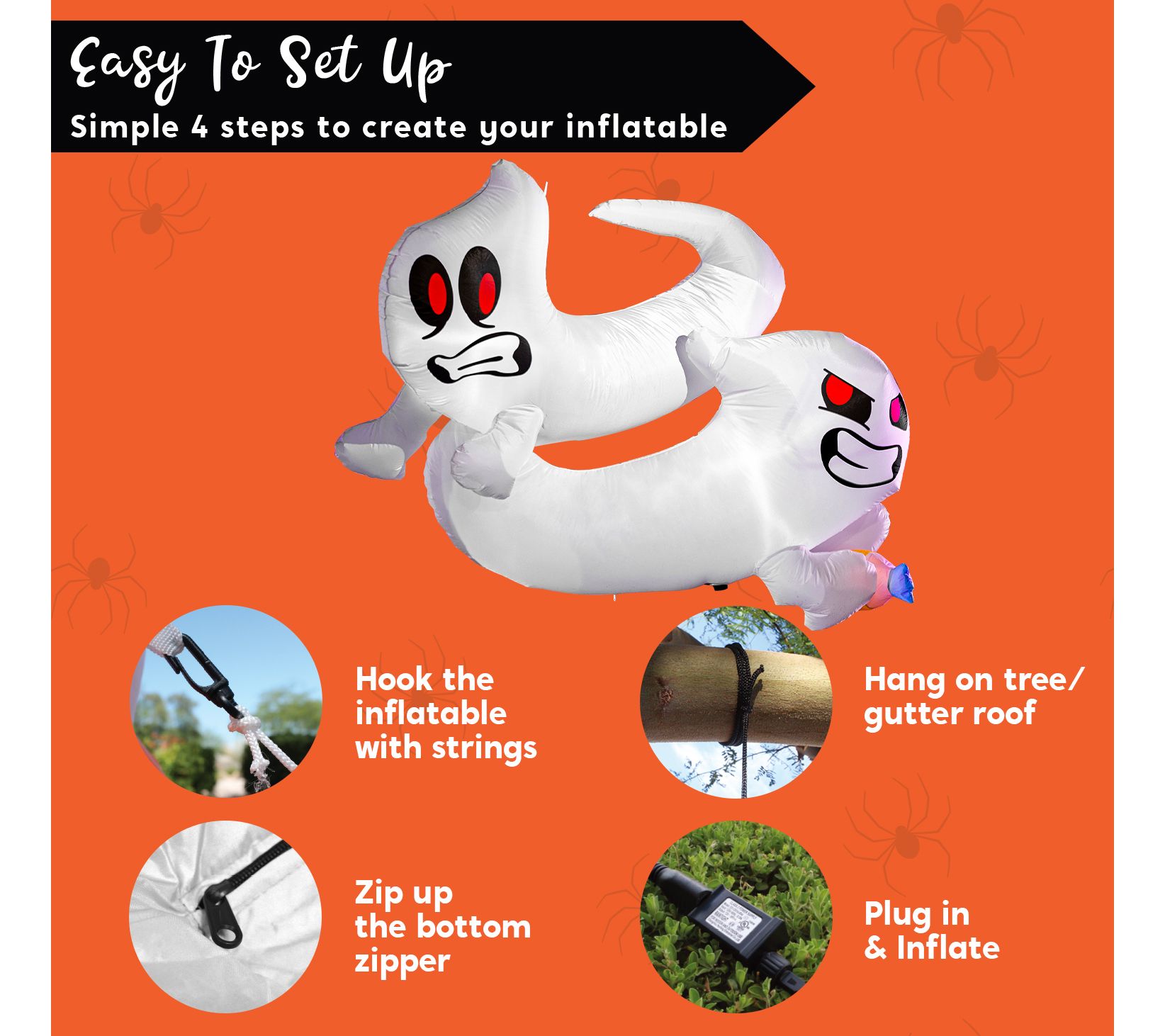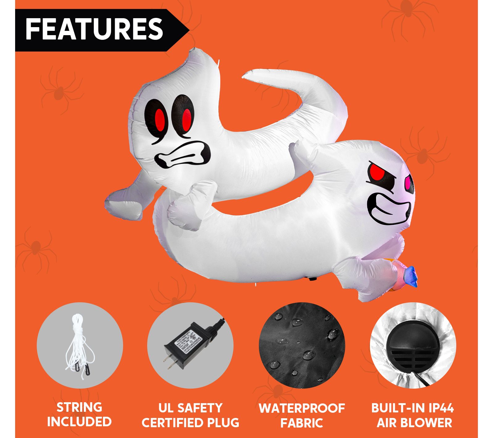 • Includes inflatable decoration, extended cords, fastened ropes, built-in sandbags, and a plug