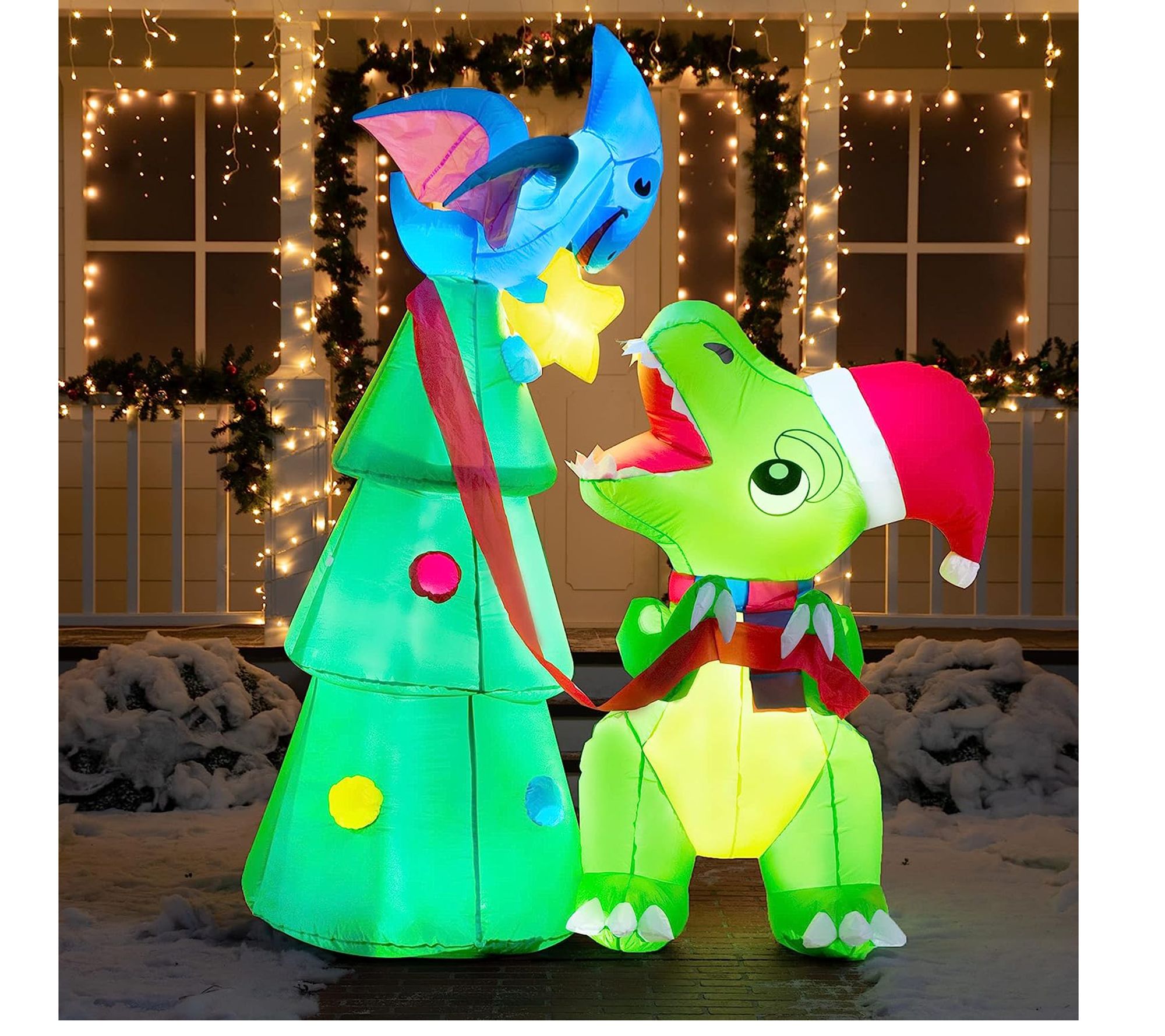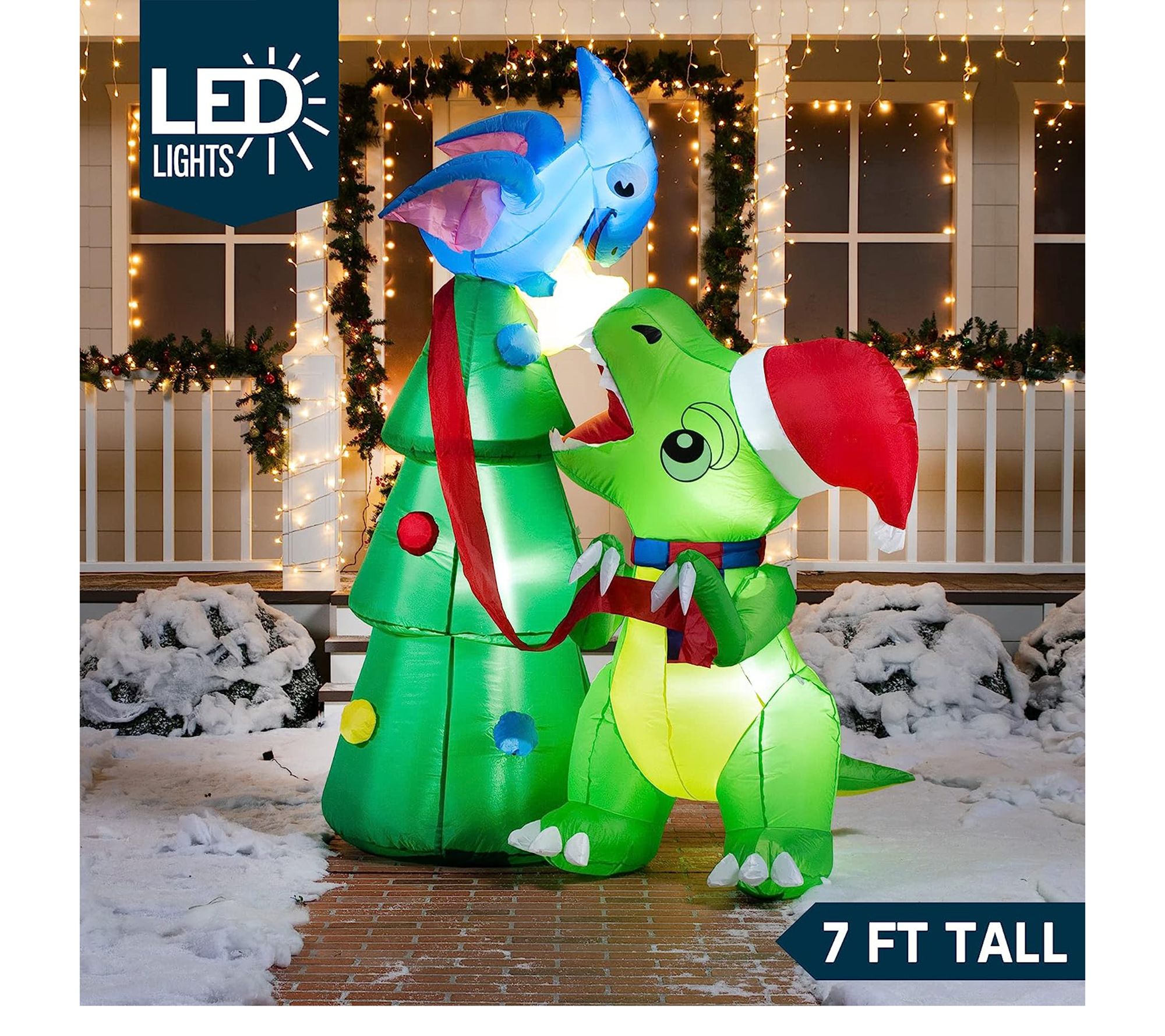 Joiedomi 7 ft Dinosaur & Christmas Tree Inflatable Decoration