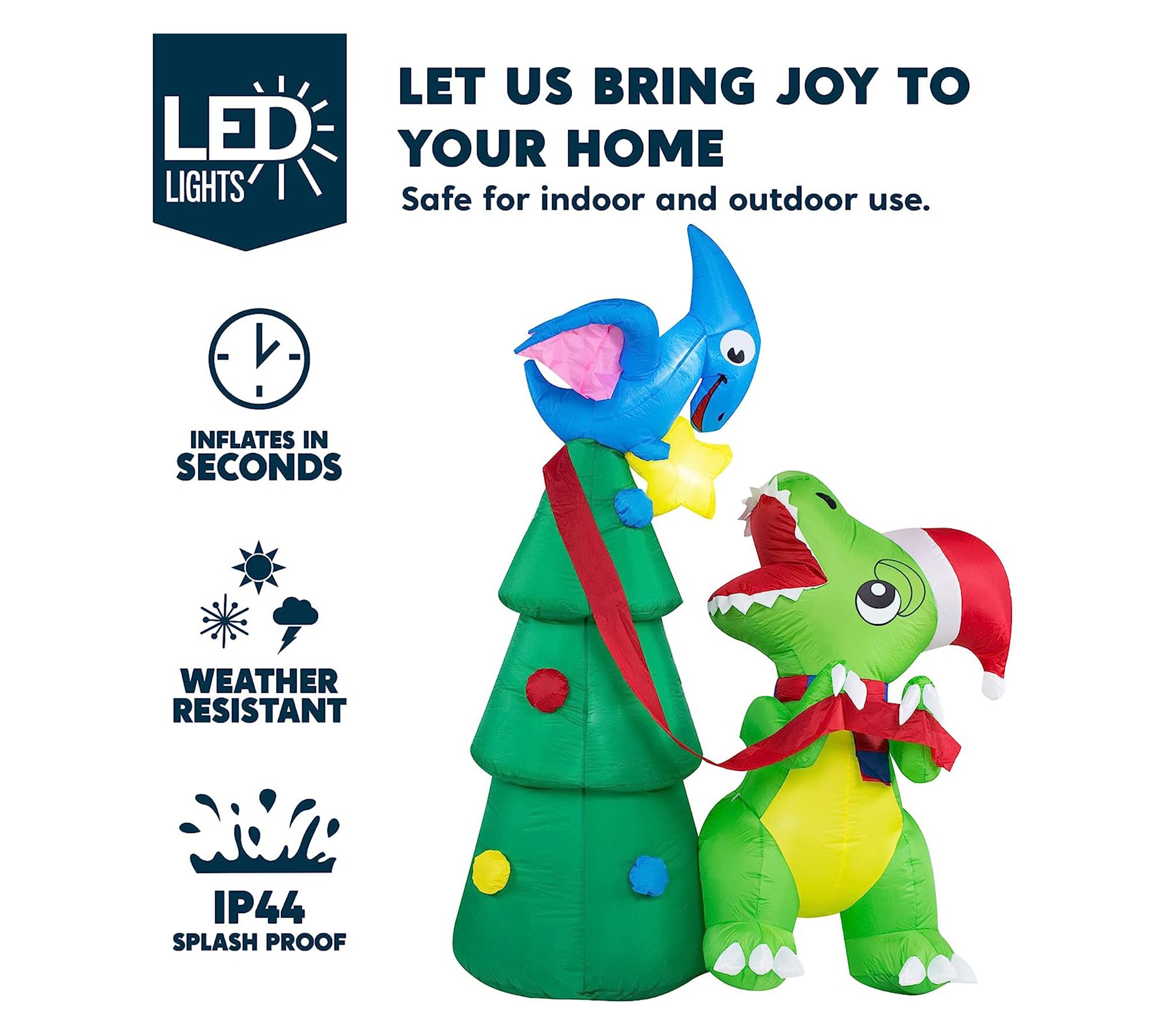 Take your outdoor holiday decor to prehistoric levels with this rawr-some dinosaur inflatable! Just plug it in and in moments, it will be inflated and ready to delight. From Joiedomi.