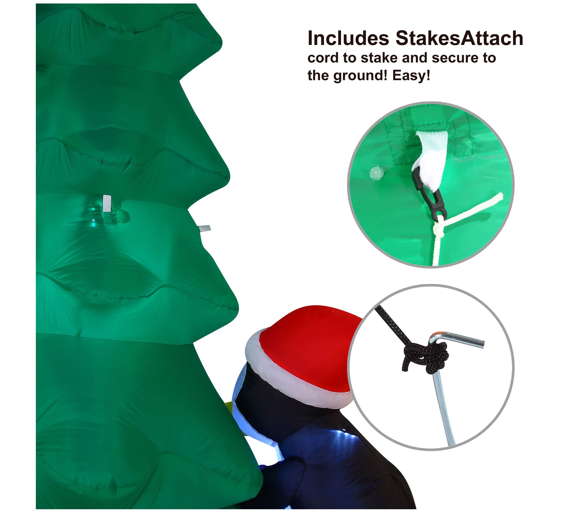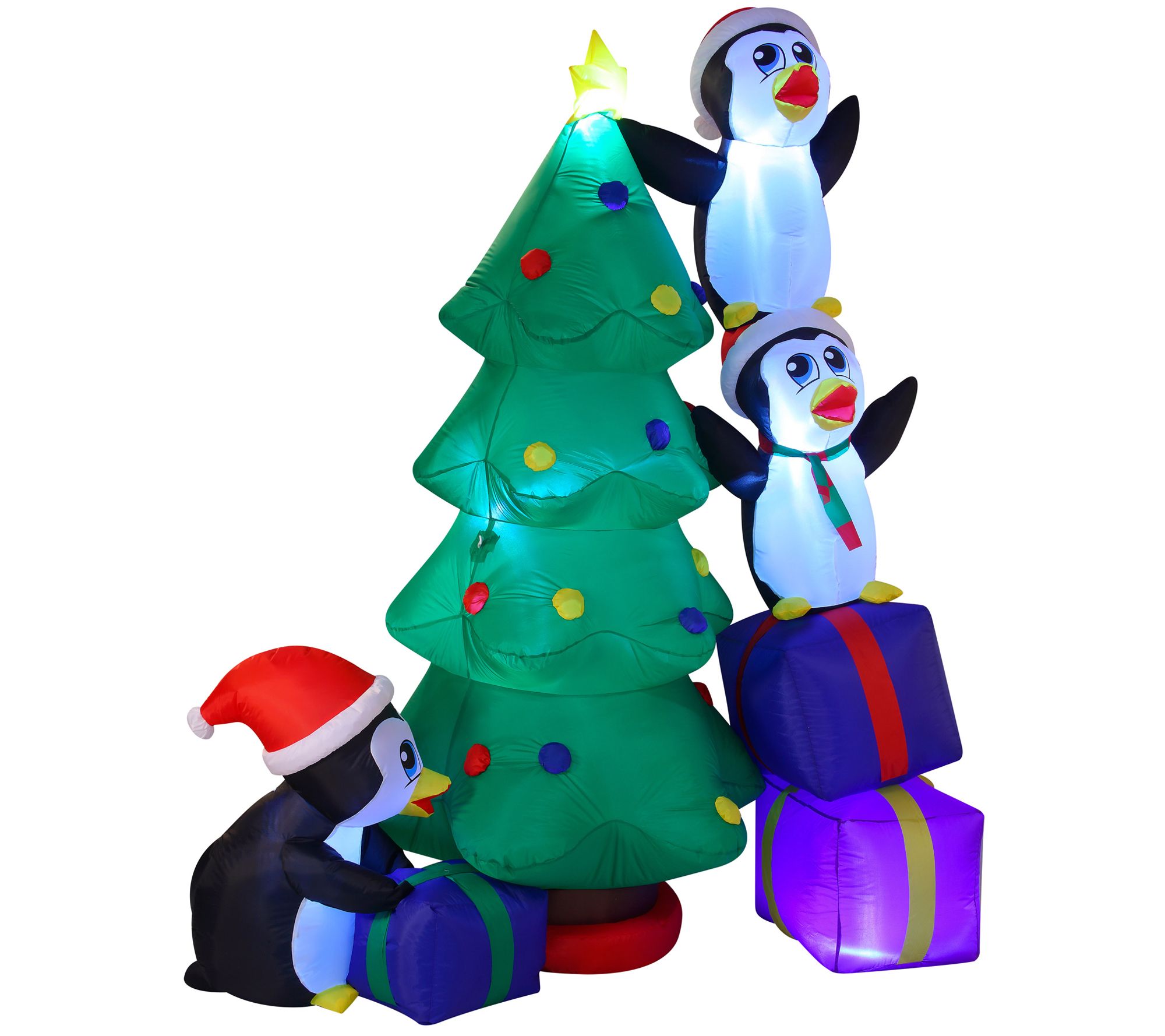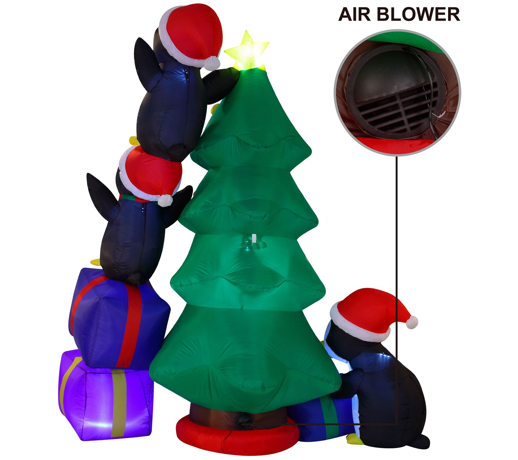 • Includes Penguins Decorating Christmas Tree inflatable decoration, extended cords, ground stakes, fastened ropes, built-in sandbags, and a plug