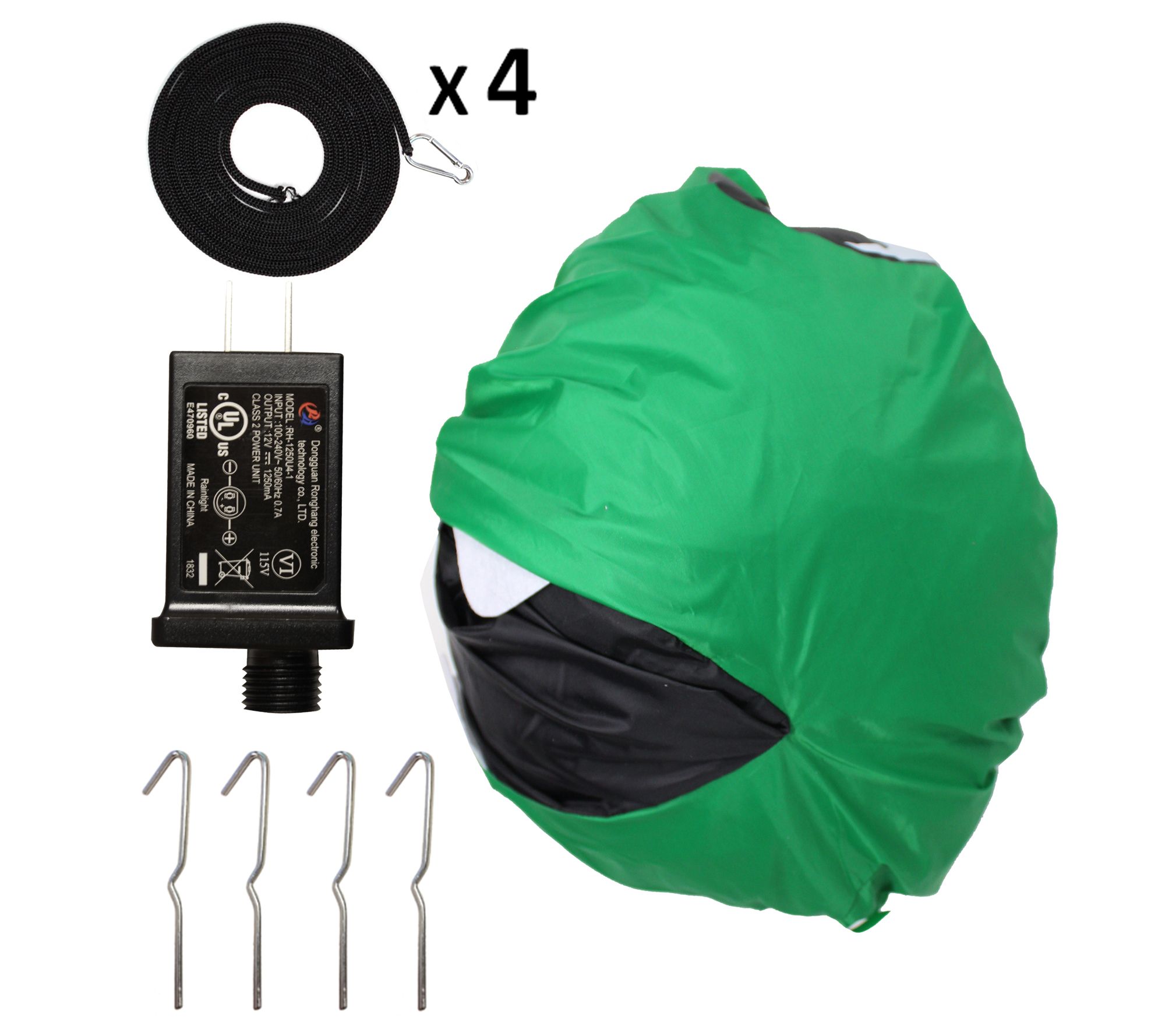 • Includes inflatable Santa, two fasten ropes, four ground stakes, and an electrical plug