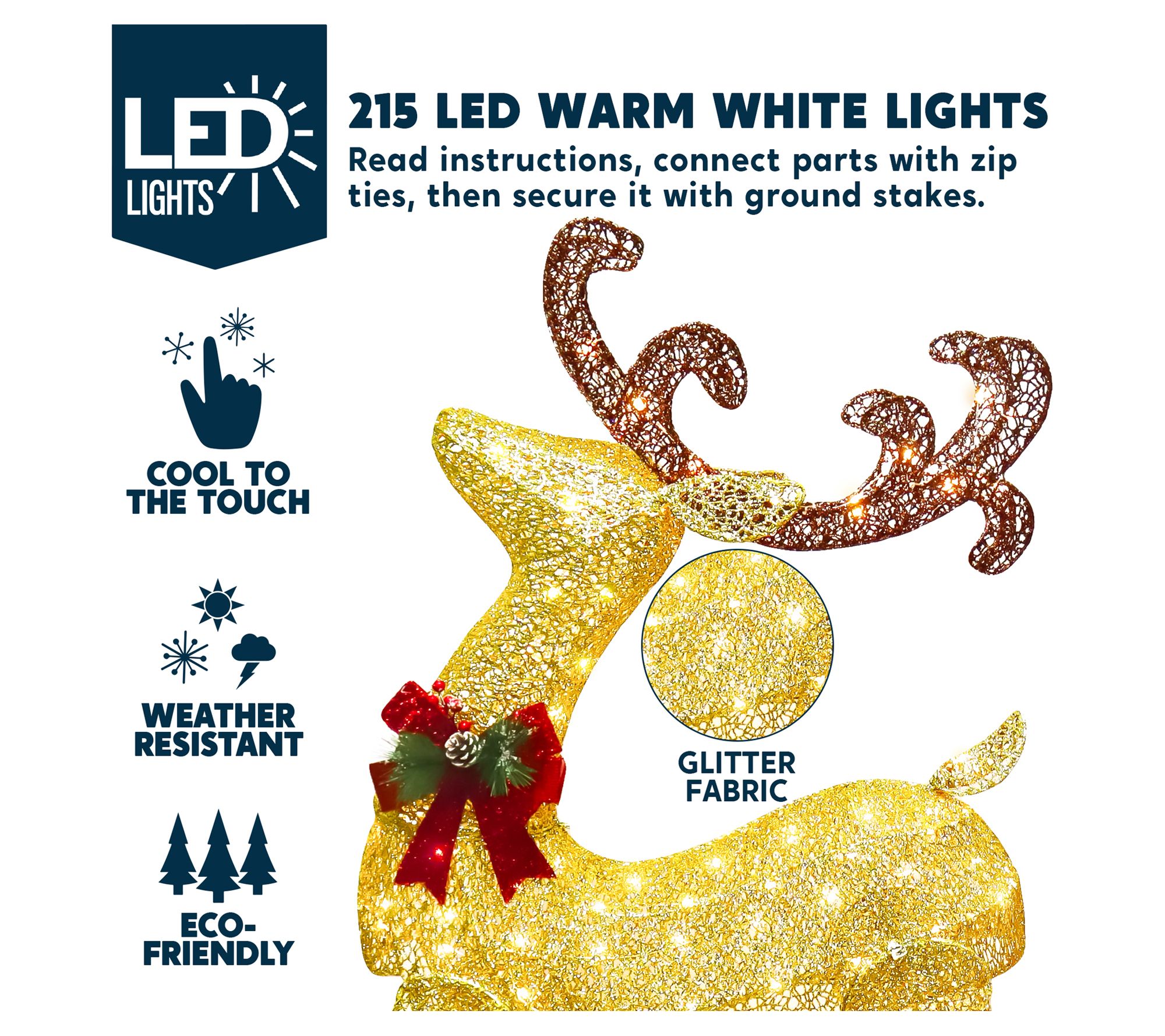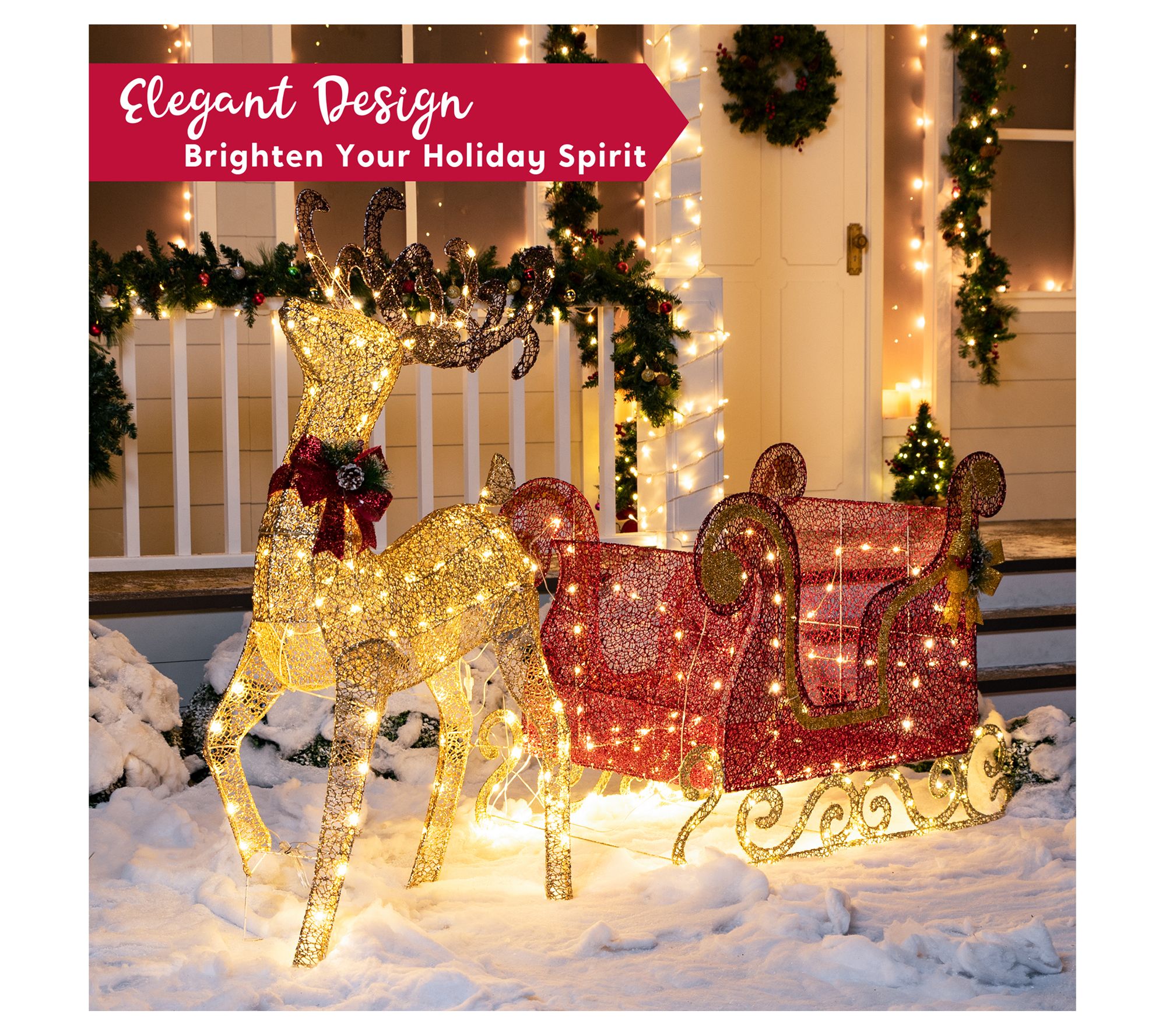 • Includes reindeer with sleigh, metal stake, and zip ties