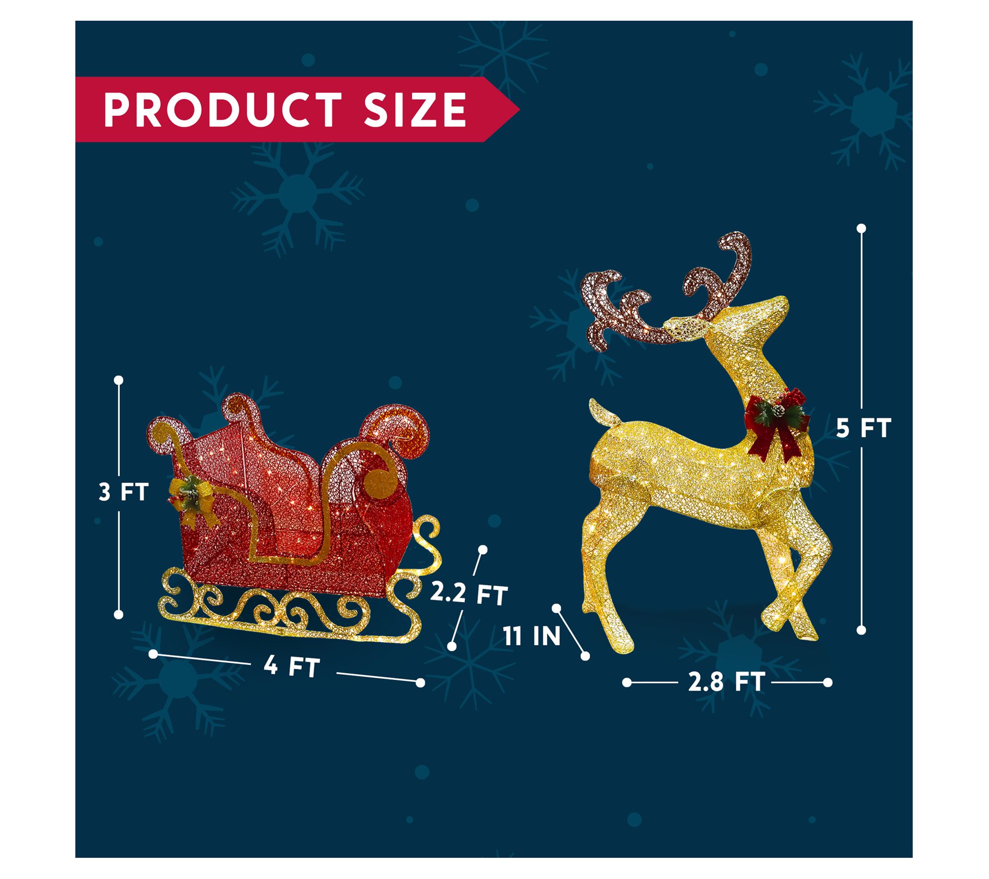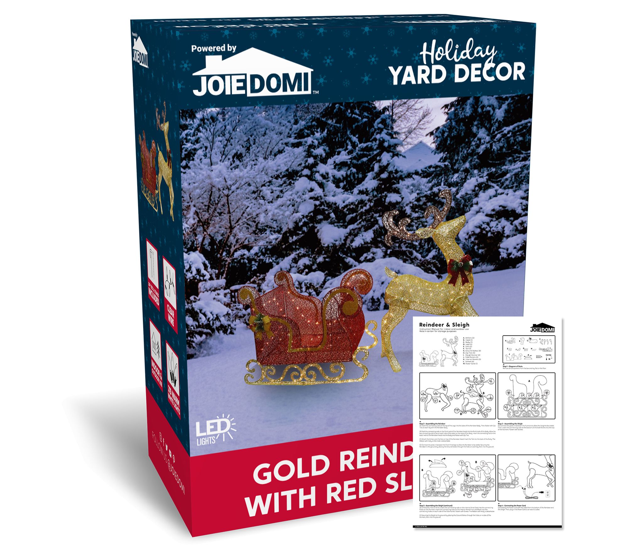 Joiedomi LED Yard Lights - 5ft Reindeer and 3ftSleigh