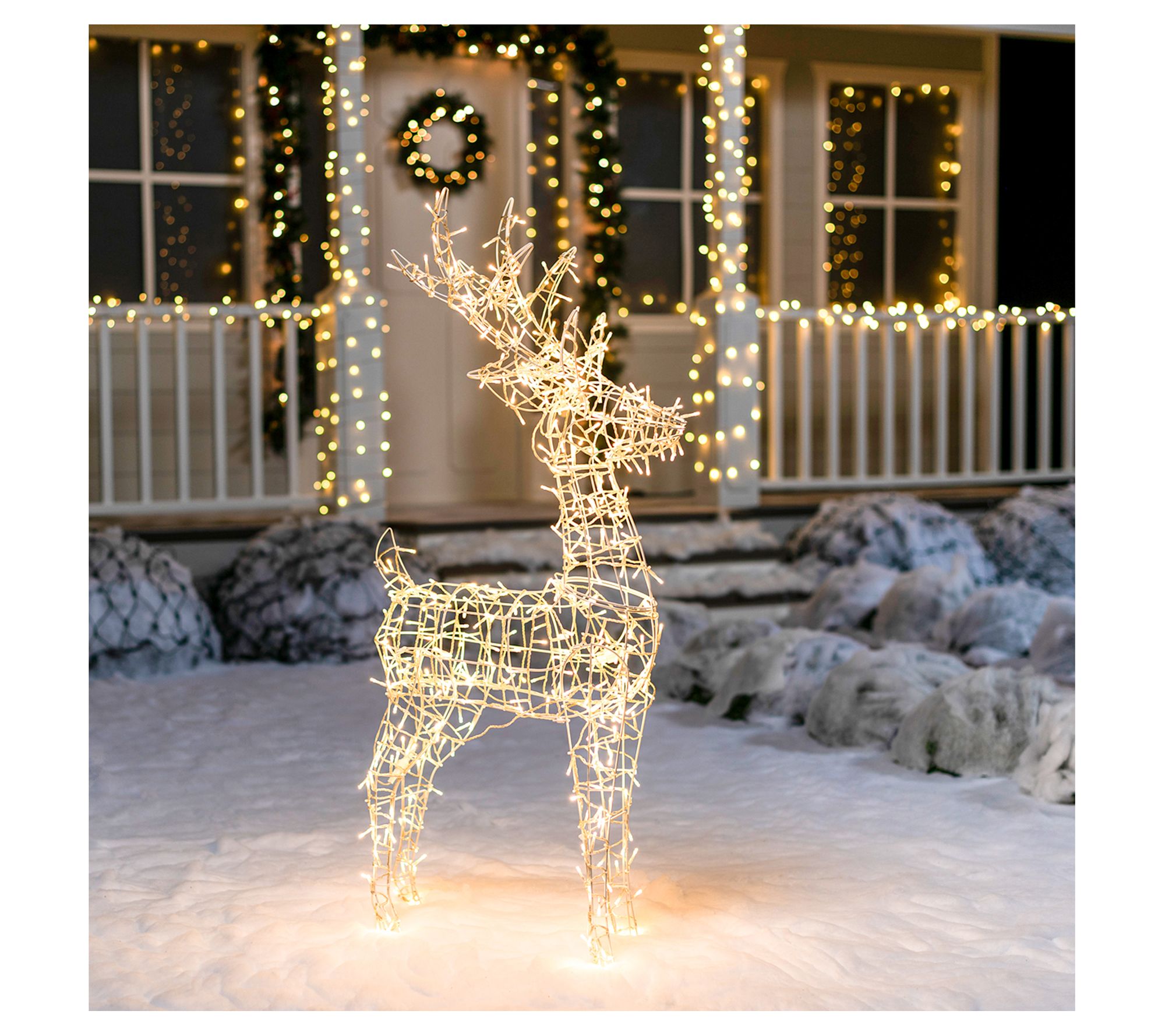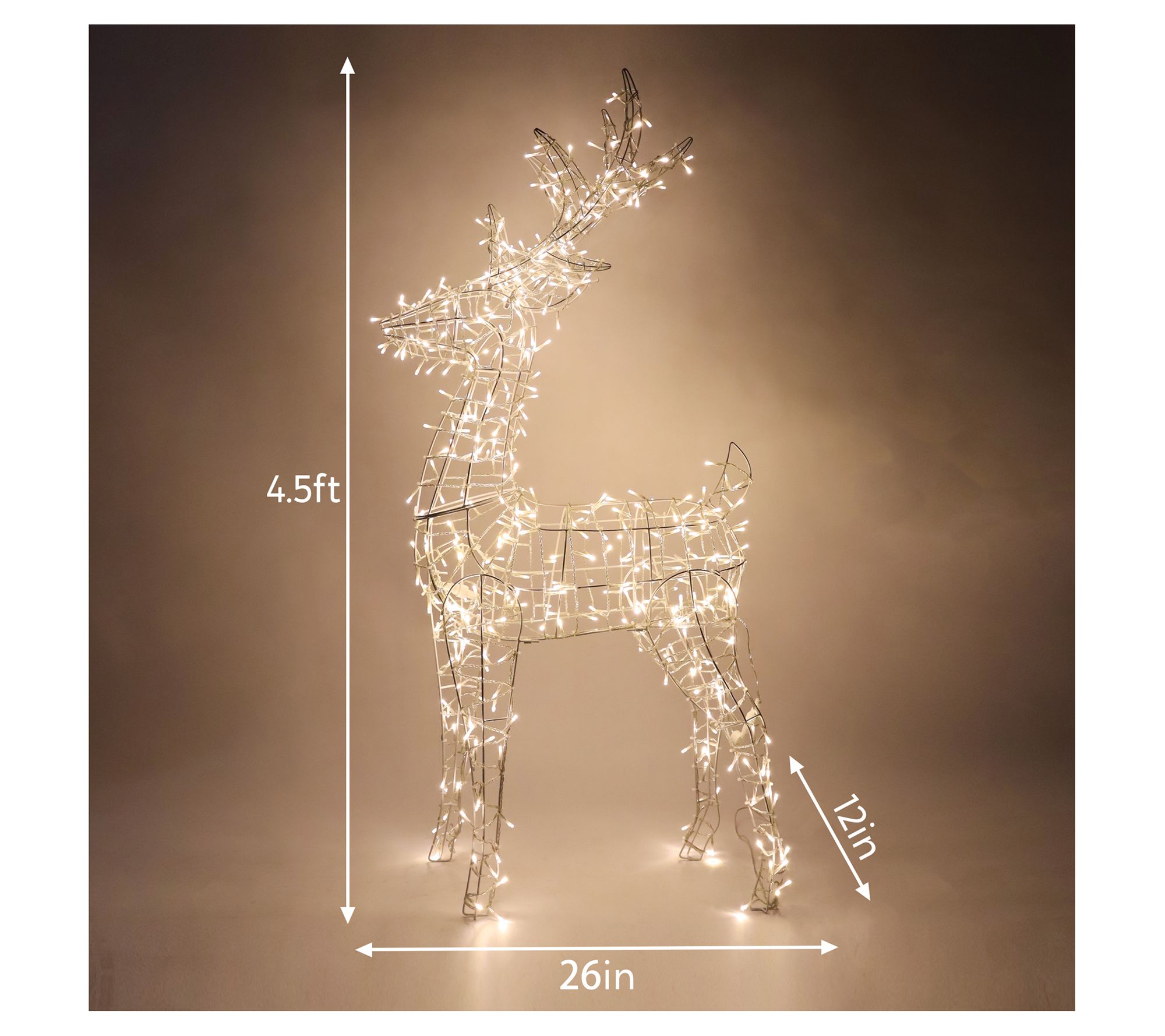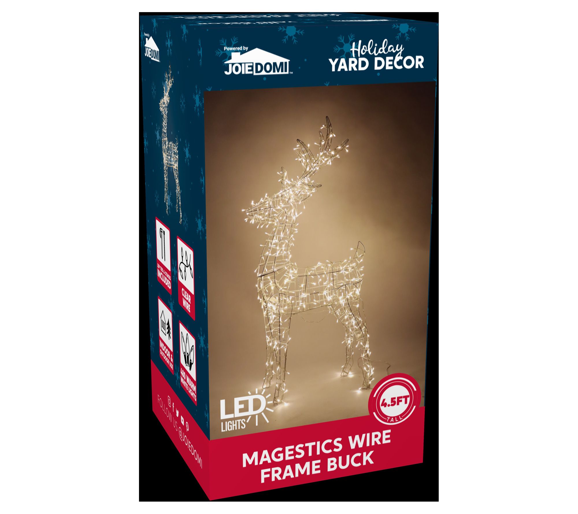 Showcasing an airy wire frame covered in warm white LED lights, this majestic buck is a beautiful way to bring woodland charm to your holiday display. From Joiedomi.
