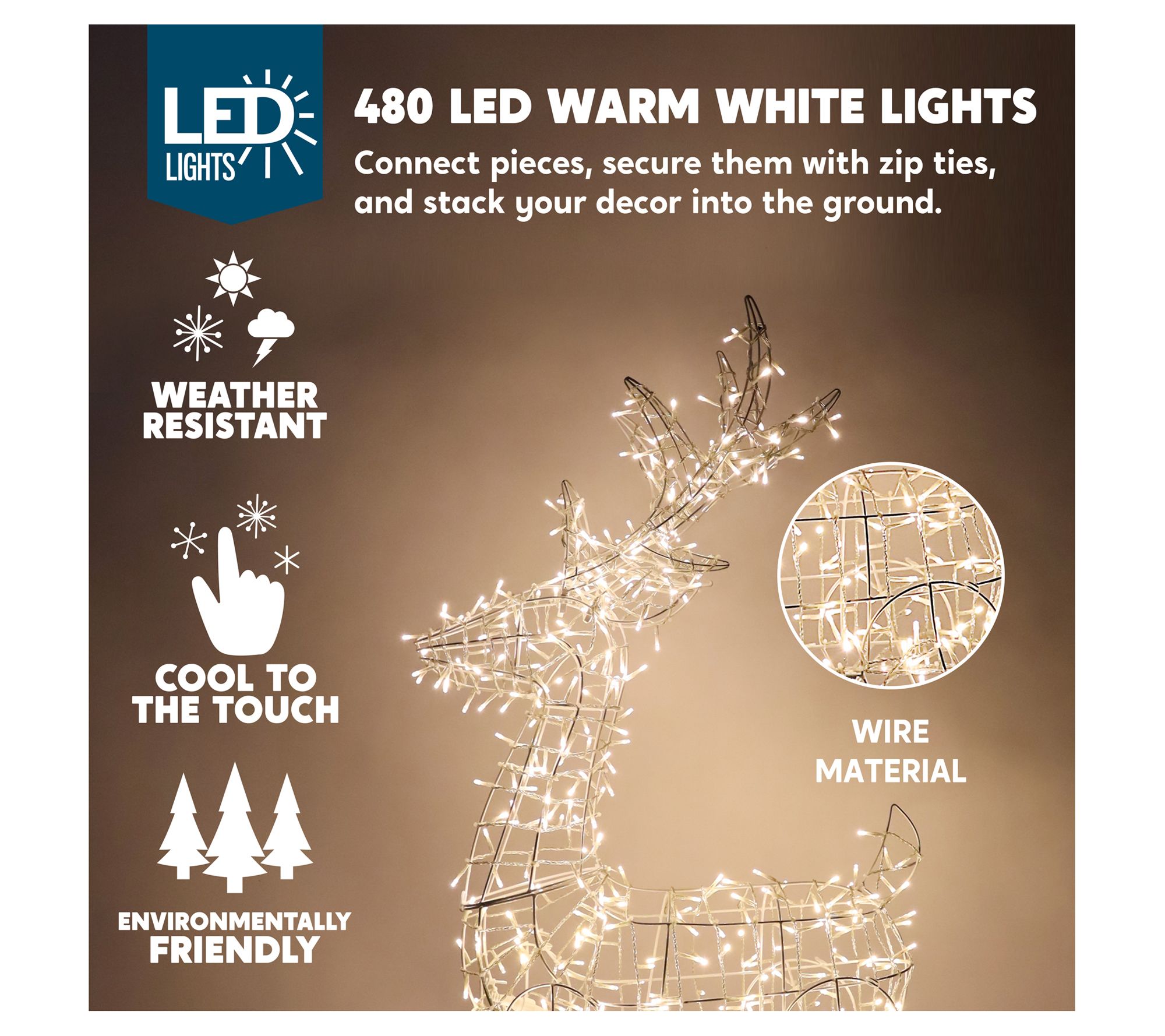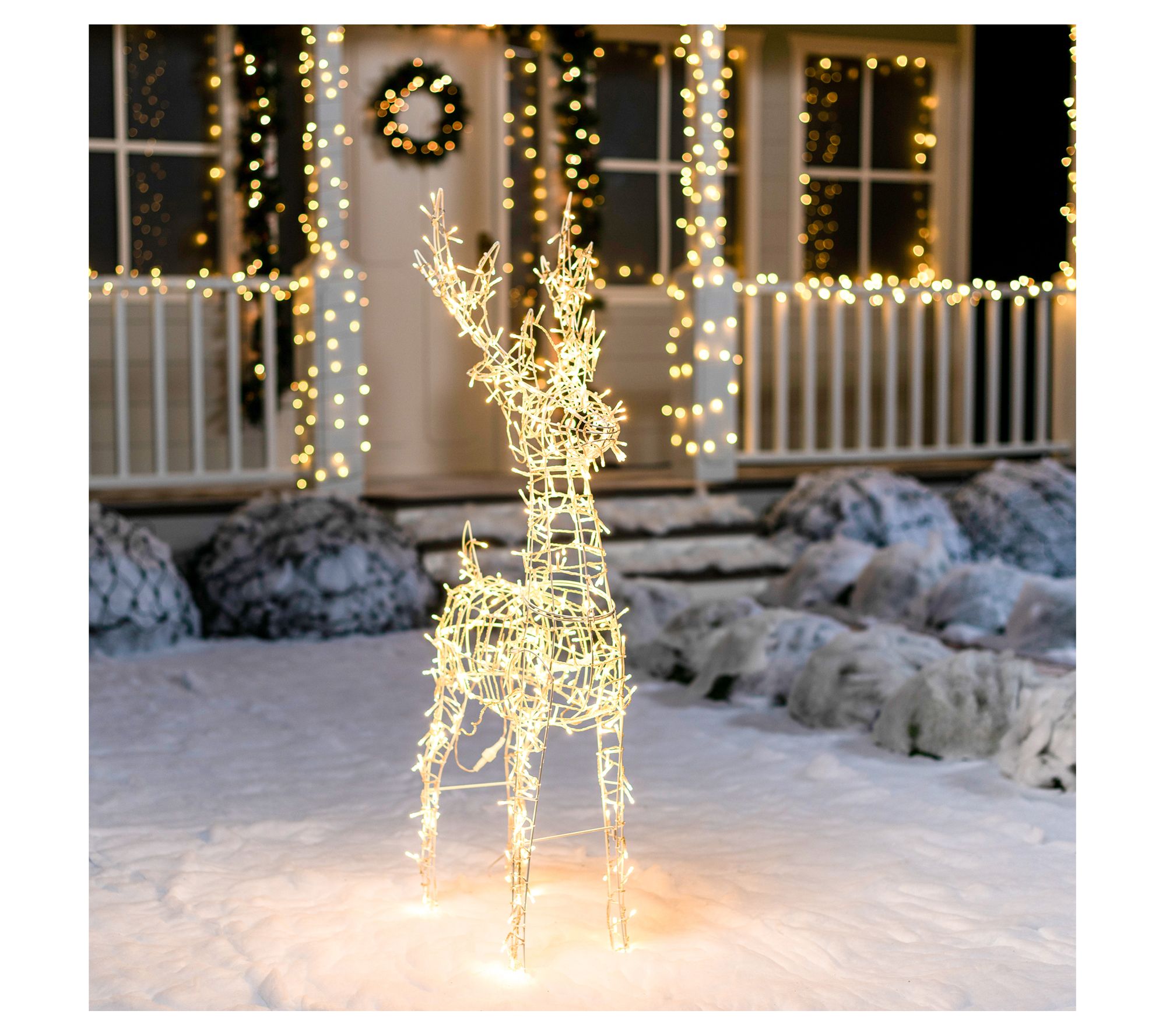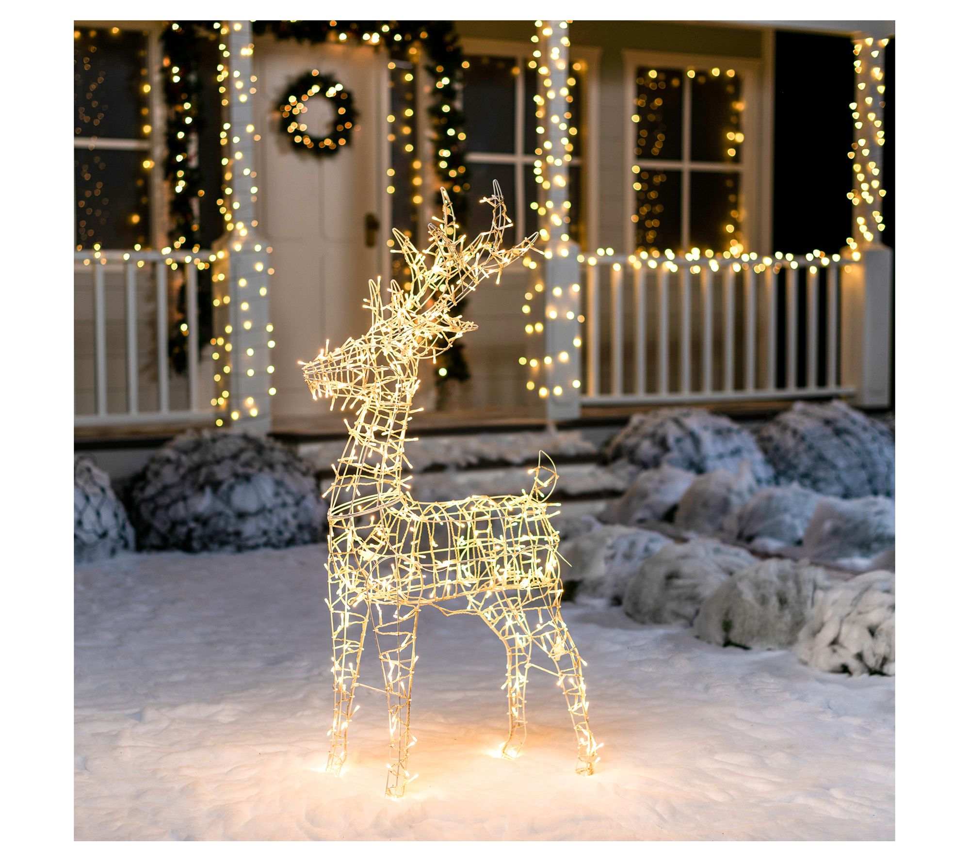 Showcasing an airy wire frame covered in warm white LED lights, this majestic buck is a beautiful way to bring woodland charm to your holiday display. From Joiedomi.