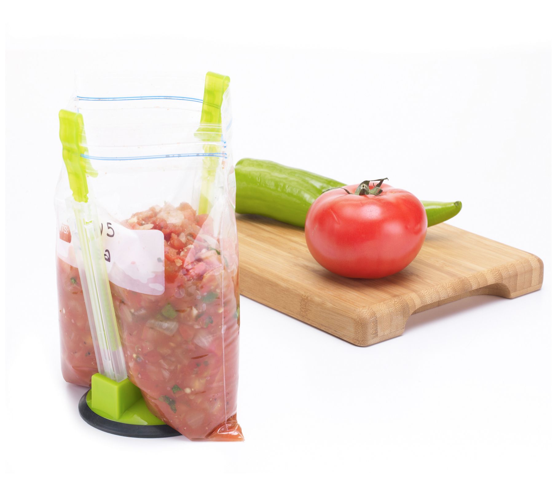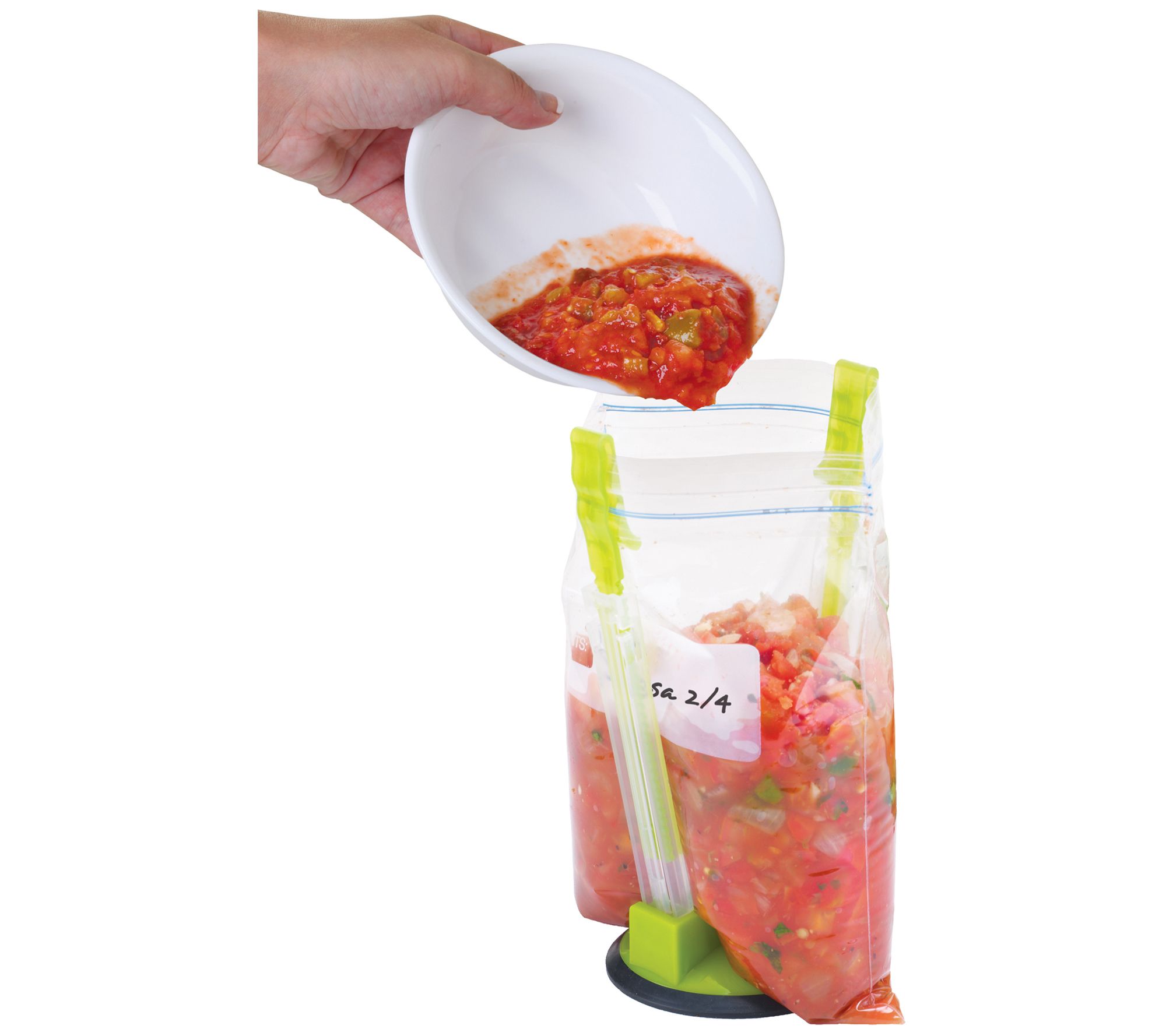 Great for leftovers and food prep, these storage bag holders fasten under clips to hold your baggies open for filling. From Jokari.