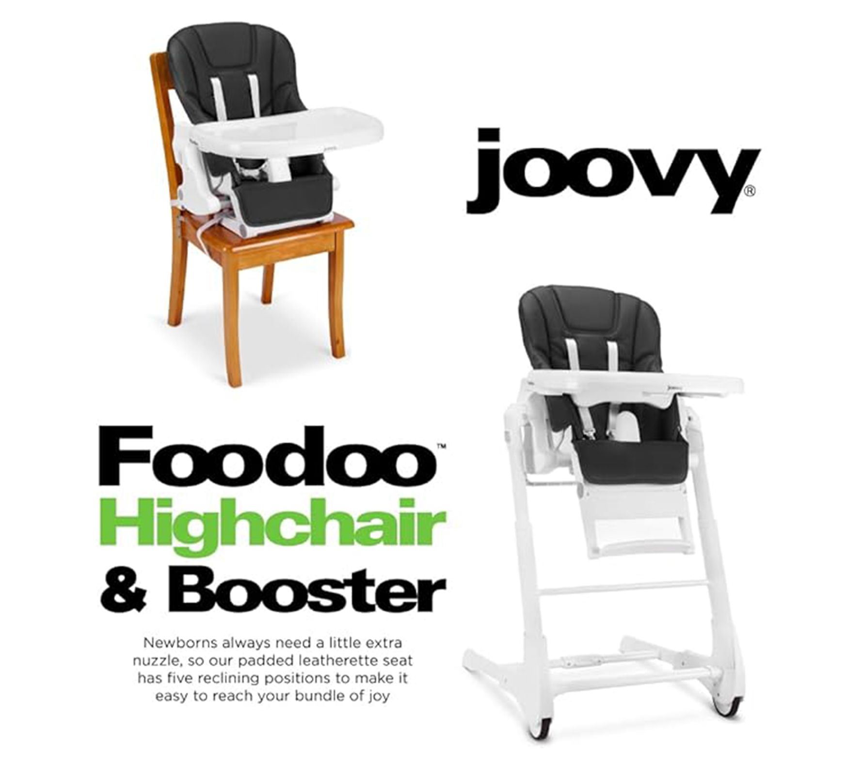 Transform mealtime into a breeze with the this high chair and booster that's designed to grow with your baby. This multifunctional marvel not only serves as a high chair but also converts into a booster seat, ensuring it's the only dining chair your little one will need. Featuring five reclining positions, it's perfect for bottle feeding your newborn or for your toddler's snack time. From Joovy.