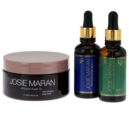 What is it: Josie Maran's Moroccan Argan Body Oil and Whipped Argan Oil Body Butter were created with Josie's signature ingredient, argan oil, an organic moisturizer to help relieve dry, dull skin. Featuring a blend of nourishing vitamins and essential fatty acids, the lightly scented body oils infuse the skin with enriched hydration and harmonize the body and soul. The Vanilla Fig Body Butter helps soften skin.
