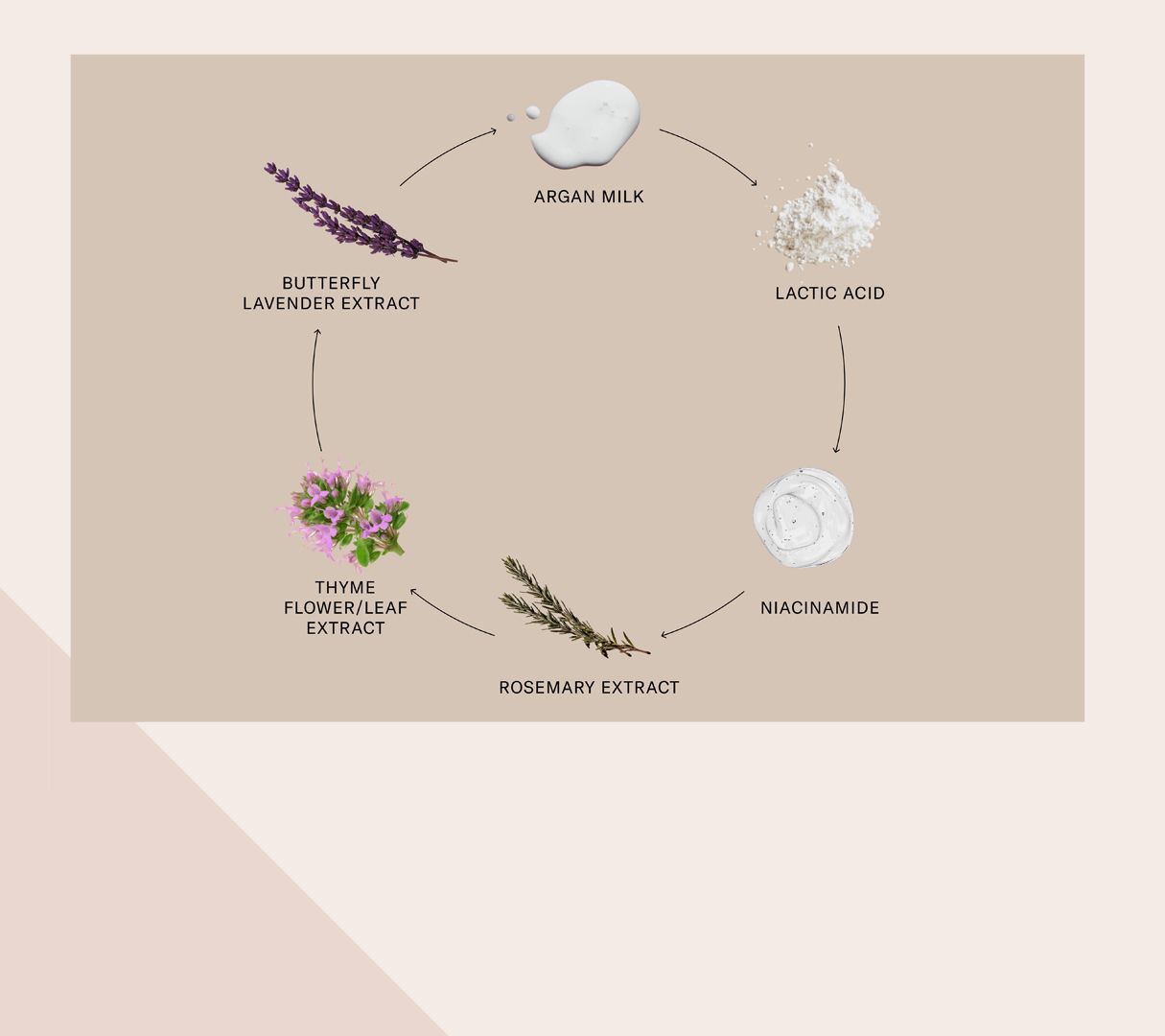 Argan Milk Hydration Nightly Cream goes to work to effectively improve the appearance of eight major signs of aging: fine lines, wrinkles, dryness, dullness, roughness, brightness, uniformity, and hydration. Moisturizing Argan Milk is whipped up with gentle exfoliants and conditioners, like rosemary, niacinamide, and lactic acid, to wake up to the apearance of beautiful, younger skin.