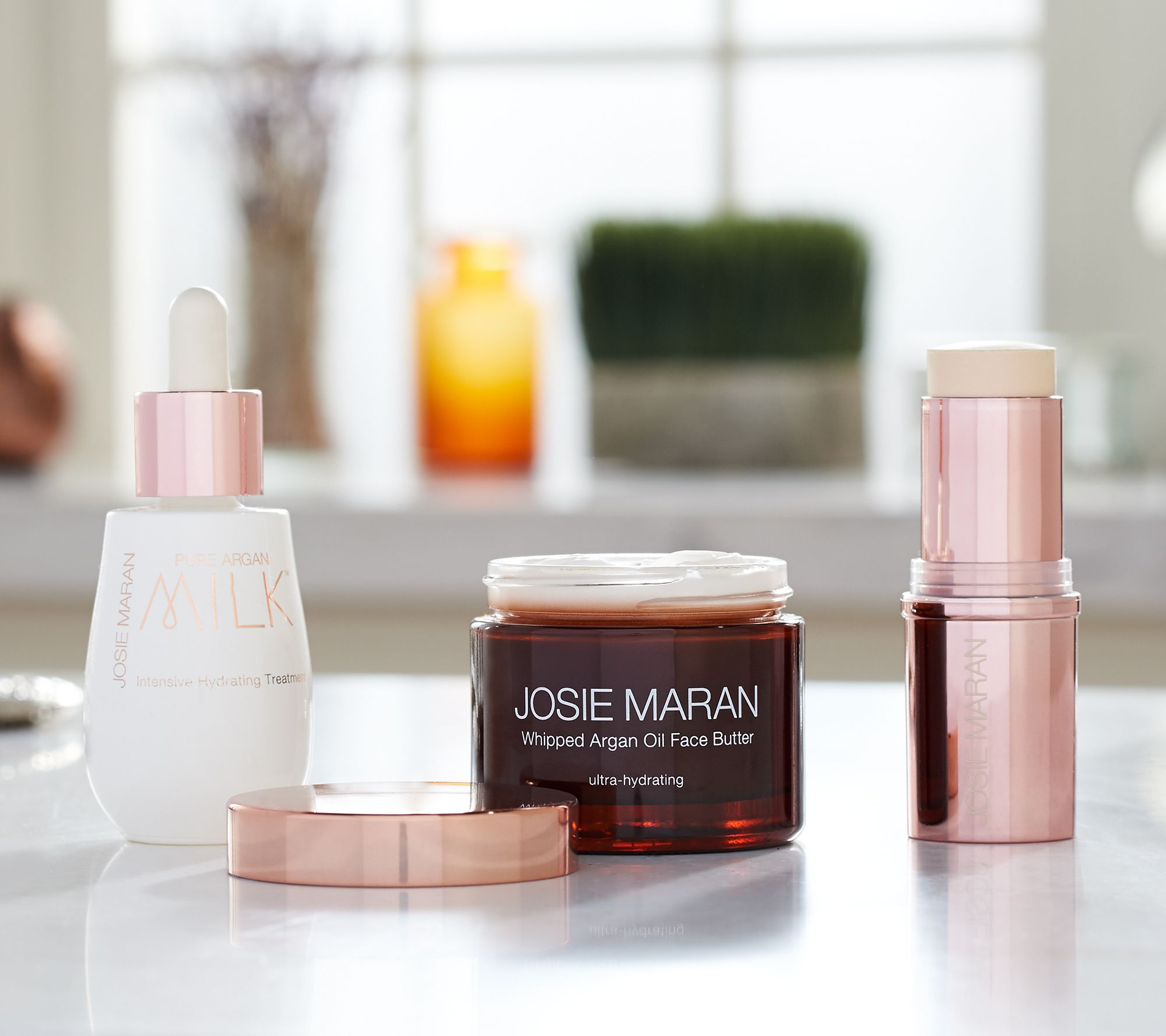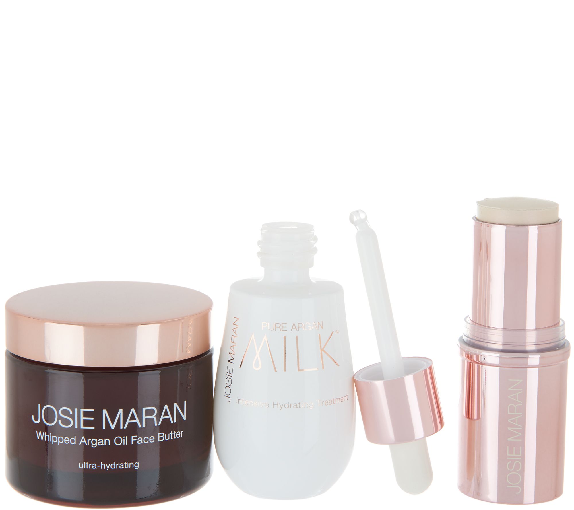 Take just three simple steps for beautiful, natural-looking, glowing skin with this argan-infused collection of glowing skin goodies. Prep skin for glowing goodness with Argan Milk to help hydrate skin. Next, help moisturize with the Whipped Argan Oil Face Butter. Finish with a touch of highlighting glow by applying Argan Moonstone Glow Stick to cheekbones, the bridge of the nose, cupid's bow, or any high point needing some extra iridescence!