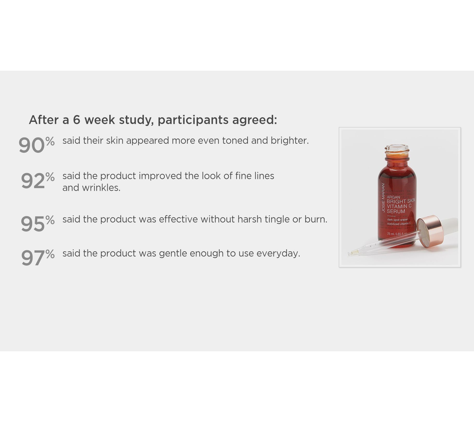Help to reduce the look of dark spots and help to even skin tone with Josie Maran Argan Bright Skin Vitamin C Serum.