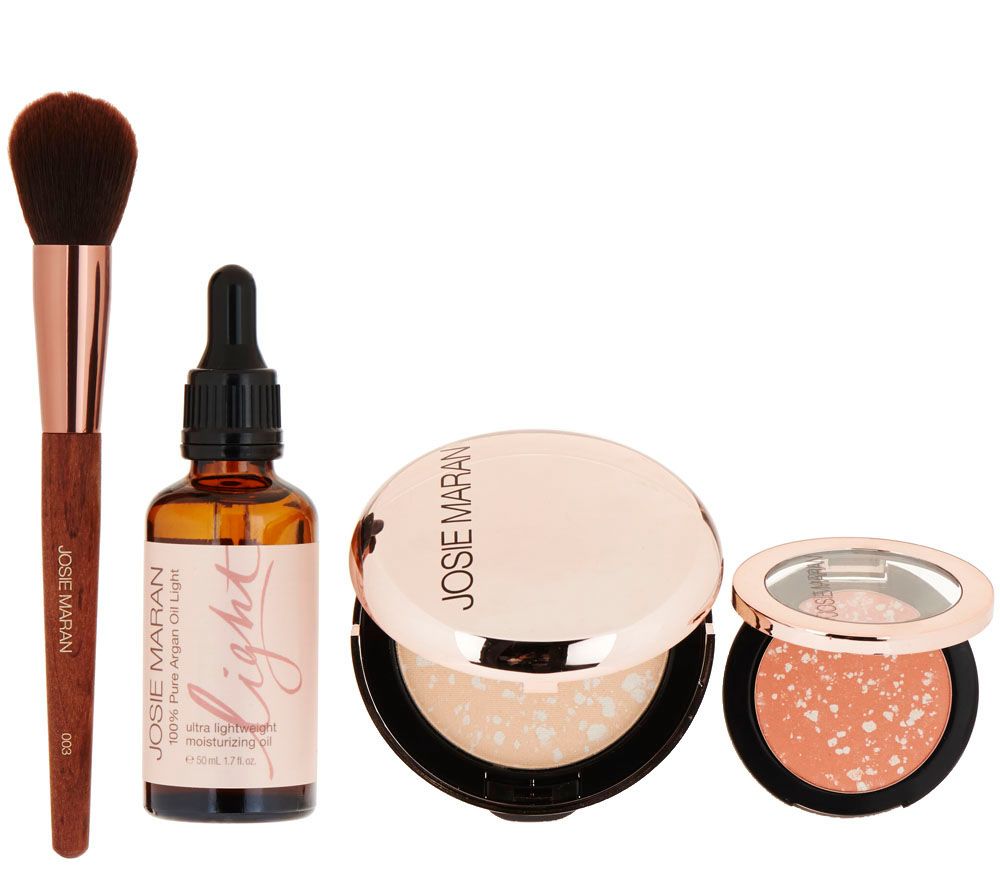What is it: Give your skin a happy glow with this set of custom complexion tools. Start your skin off with a dose of nourishing hydration and essential fatty acids with 100% Pure Argan Oil Light, the featherweight version of the best-selling Josie Maran Argan Oil. Follow with Argan Matchmaker Powder Foundation, a lightweight powder foundation that instantly adjusts to your skin tone. Add a pop of pink to cheeks with Argan Matchmaker Blush for a custom flush that matches your own natural rosy glow.