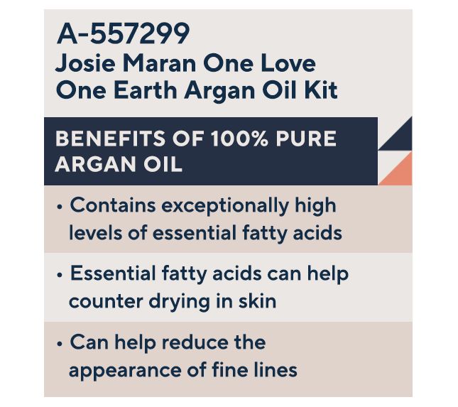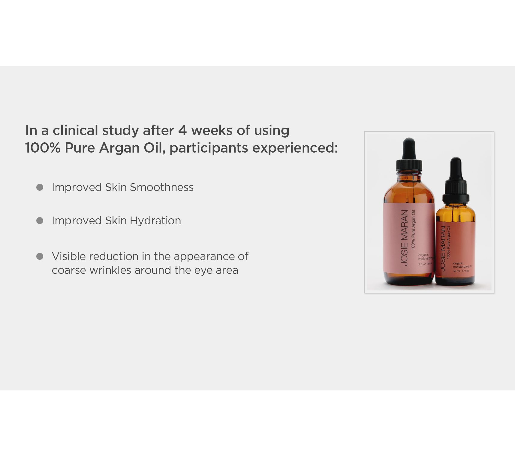 Customer Choice Beauty Award for Best Face Moisturizer, Josie's beloved 100% Pure Argan Oil immediately feeds and nourishes skin with vitamin E, antioxidants, and essential fatty acids, using only one ingredient straight from Mama Nature herself. Cold-pressed, completely organic, and fragrance-free, this multitasking skin hydrator instantly replenishes wherever you apply for a healthy-looking radiance.