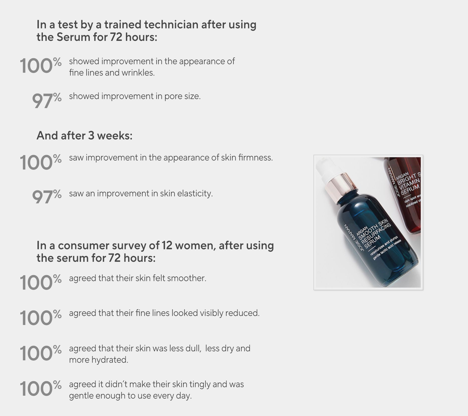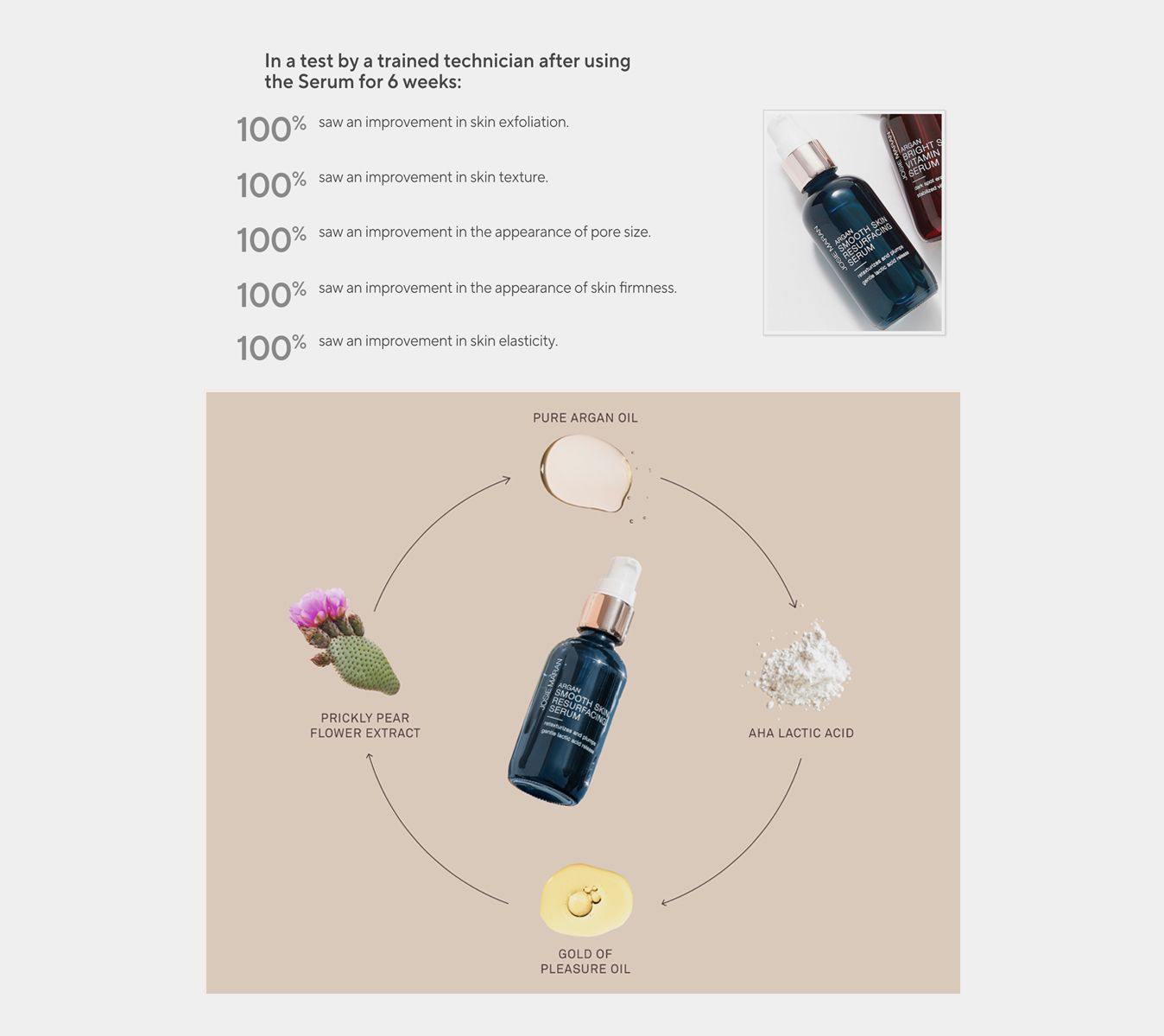 At night, apply three to four drops of Argan Smooth Skin Resurfacing Serum to clean skin. Tip: moisturize skin by pressing a few drops of oil on top for hydration (not included).