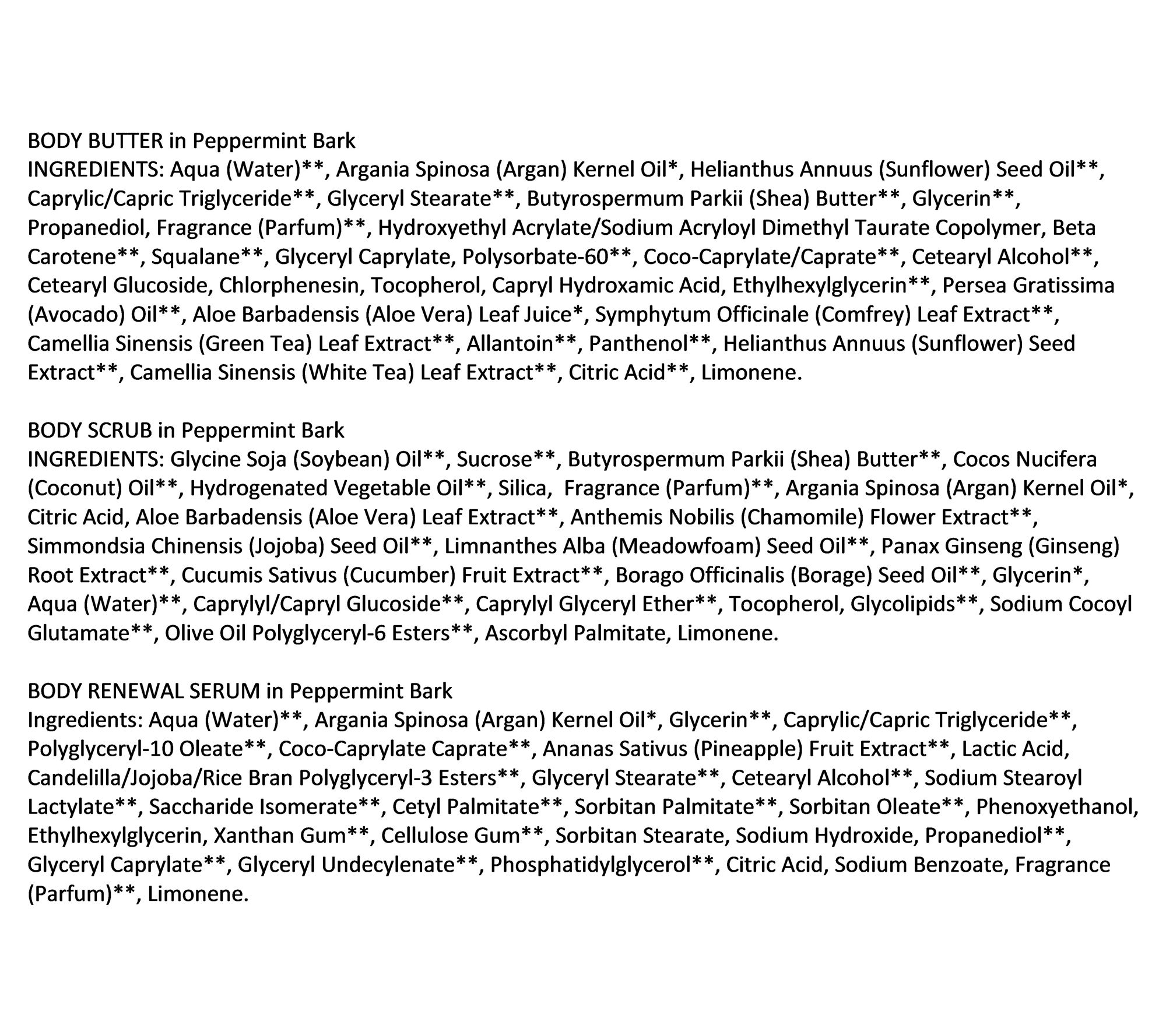 Let's do the peppermint twist with this full-body Josie Maran collection that will help keep you looking smooth, feeling moisturized, and smelling delicious. All three items come in a delicious Peppermint Bark fragrance featuring peppermint and spearmint blended with chocolate and vanilla buttercream.