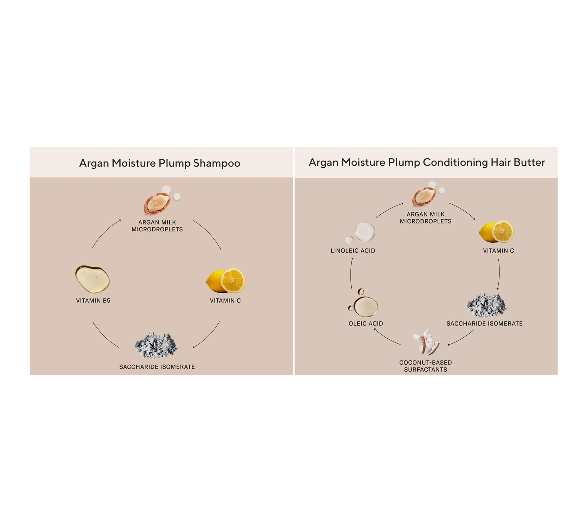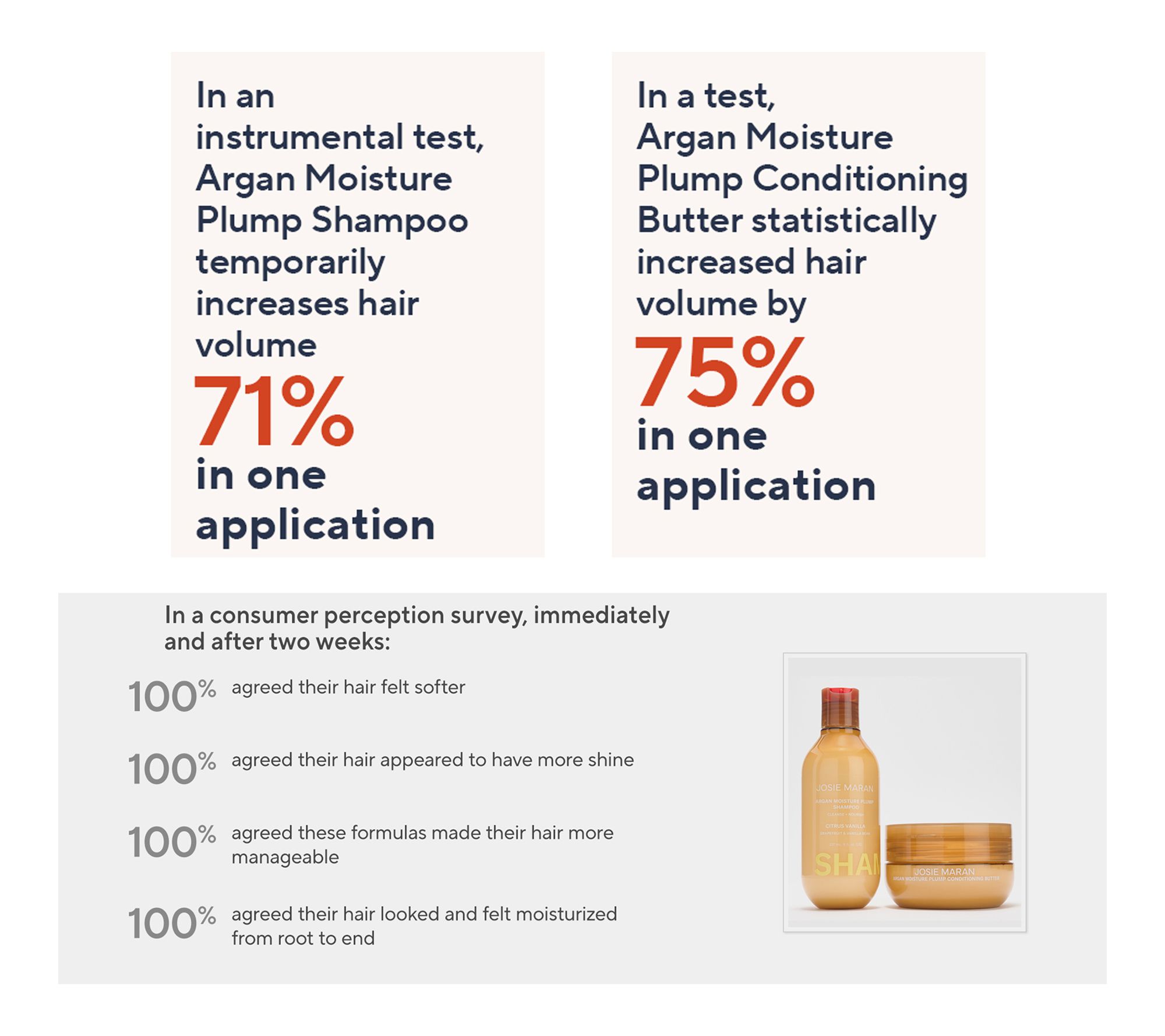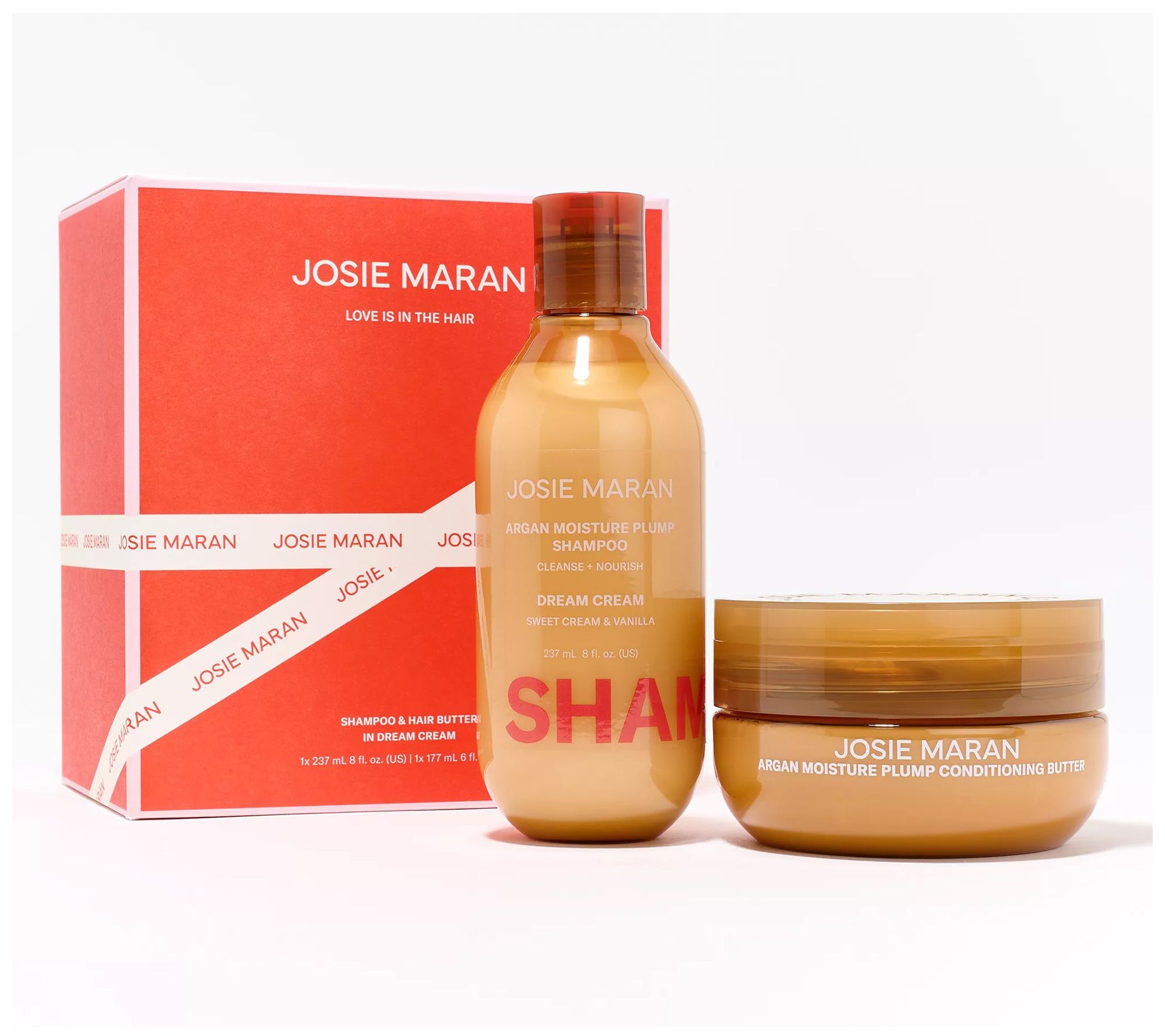 From Josie Maran, this shampoo cleanses while plumping with weightless moisture to leave hair shinier and bouncier. The conditioning butter is a rich conditioner that plumps hair with weightless moisture for volume, body, and shine.