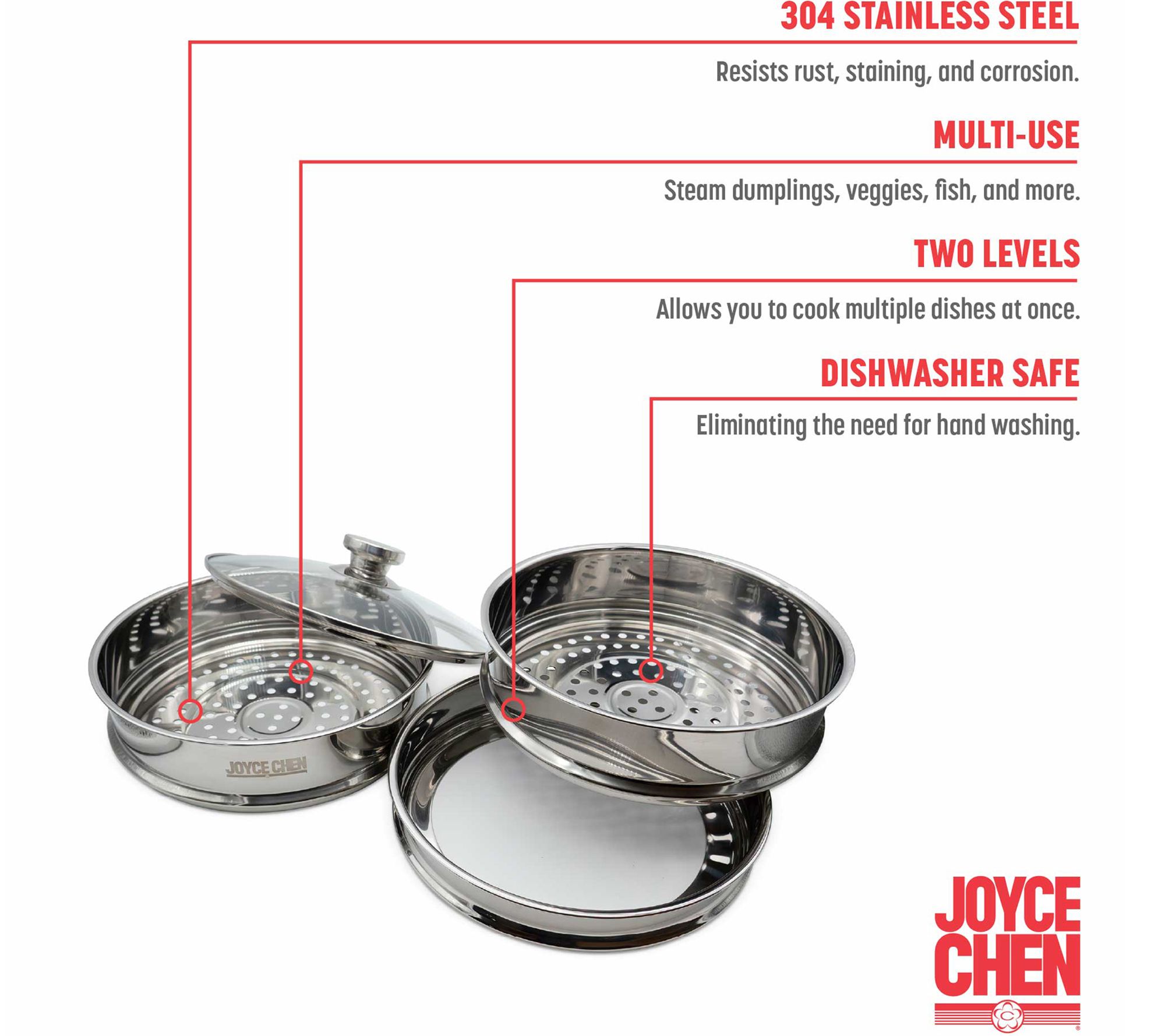 Joyce Chen 2-Tier Stainless Steel Steamer, 10-inch