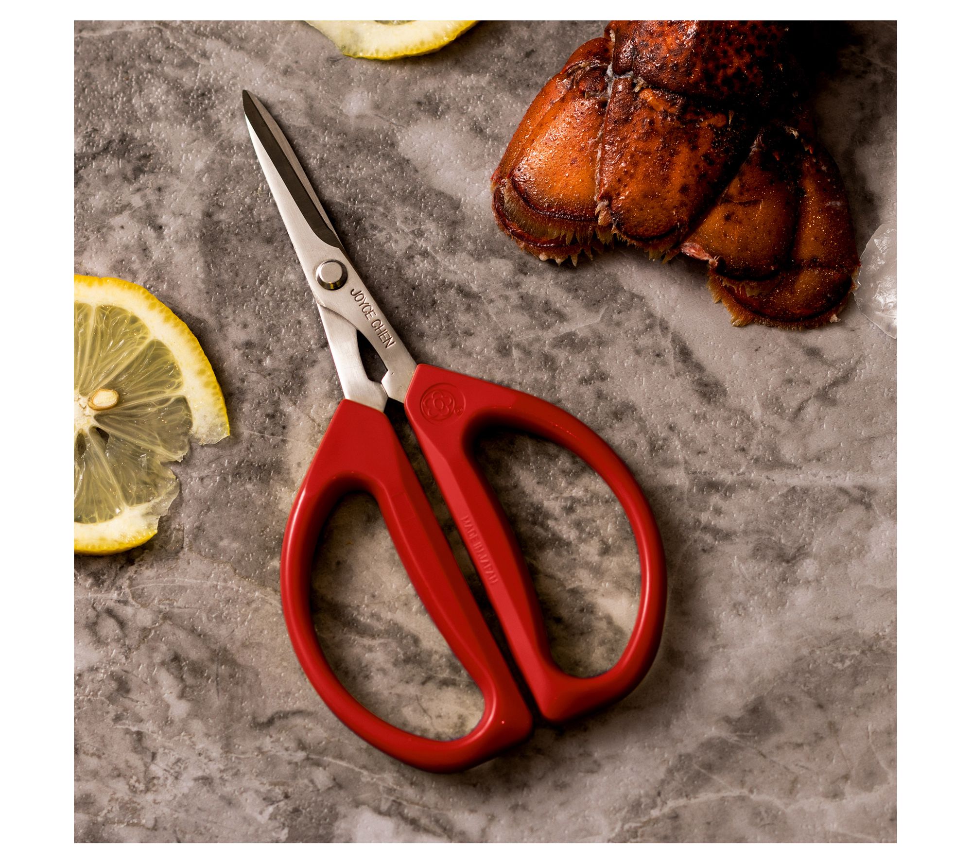 From meal prep to garden chores, this set of Joyce Chen kitchen shears makes quick work of everything from trimming herbs to slicing shellfish. High carbon Japanese stainless steel blades offer precise, clean cuts, while ergonomic, color-coded handles deliver comfort during any task. The Deluxe model even comes apart for easy cleaning, so you can move from kitchen to garden with confidence. From Joyce Chen.